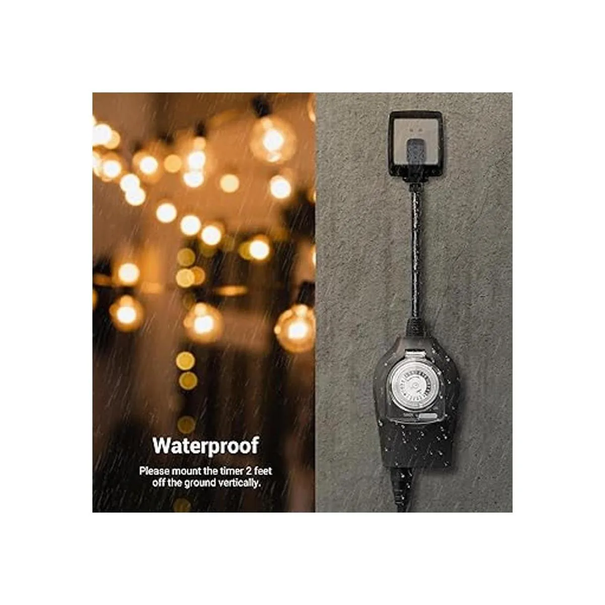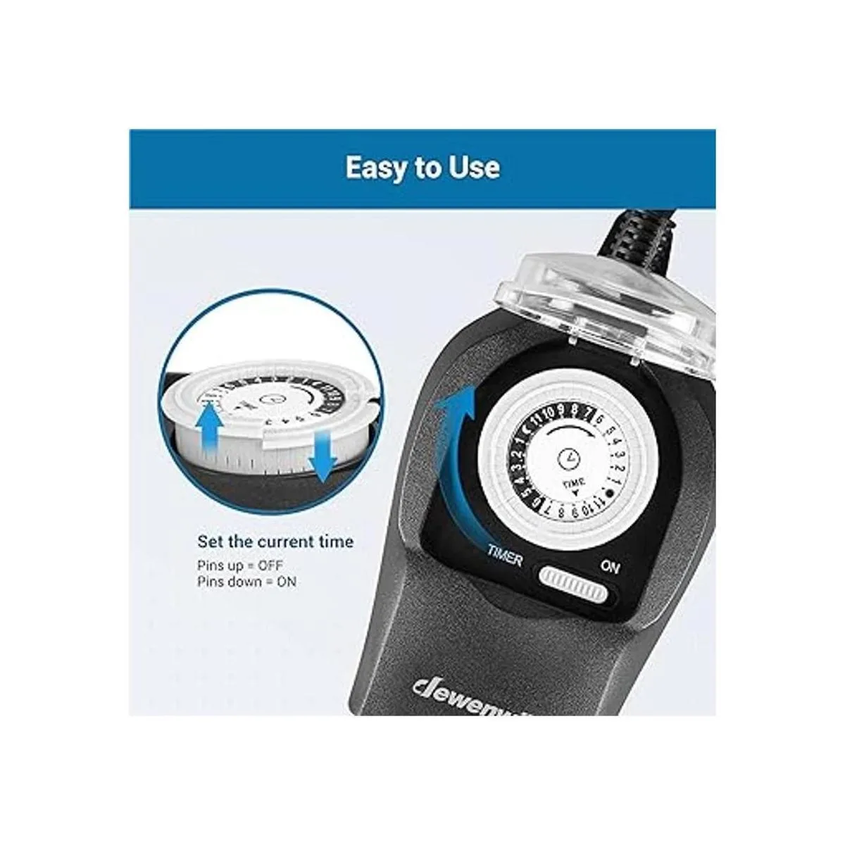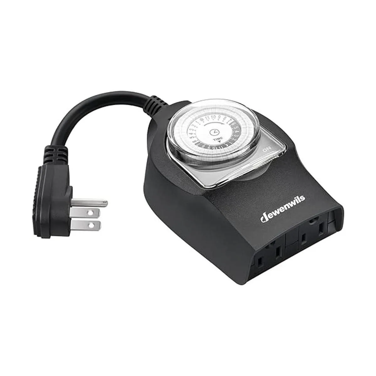 DEWENWILS Temporizador de exterior para luces impermeable, temporizador mecánico con enchufe de 24 horas, interruptor de temporizador programable de alta resistencia con 2 salidas a tierra para decoraciones de Halloween, certificación UL de 15A 12HP