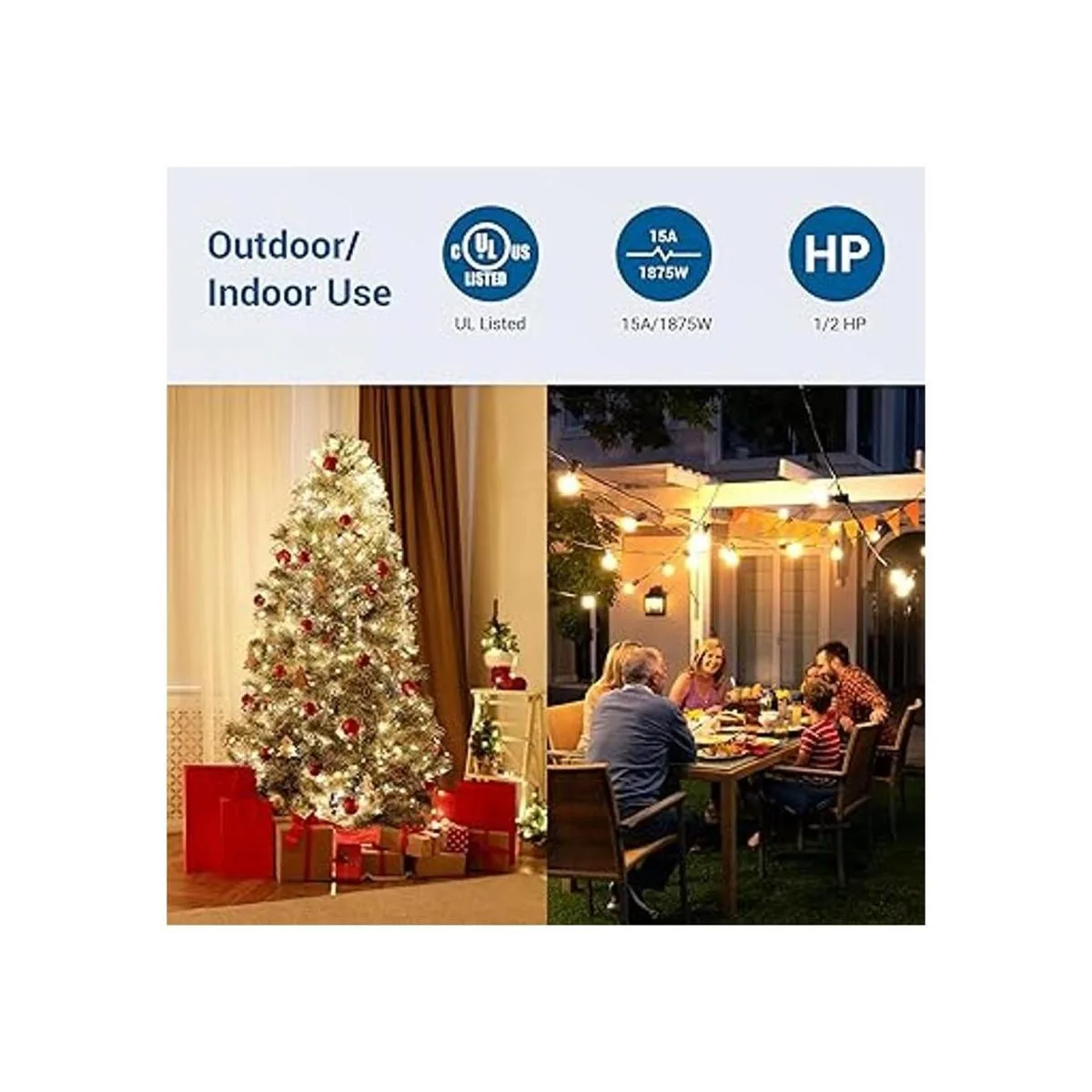2 salidas a tierra: 2 tomas de tierra se pueden controlar simultáneamente, puede controlar luces de Navidad/vacaciones, cadena de luces al aire libre y otras luces decorativas de jardín