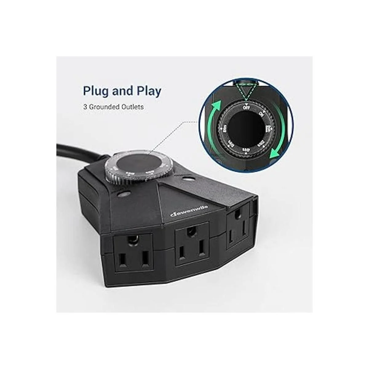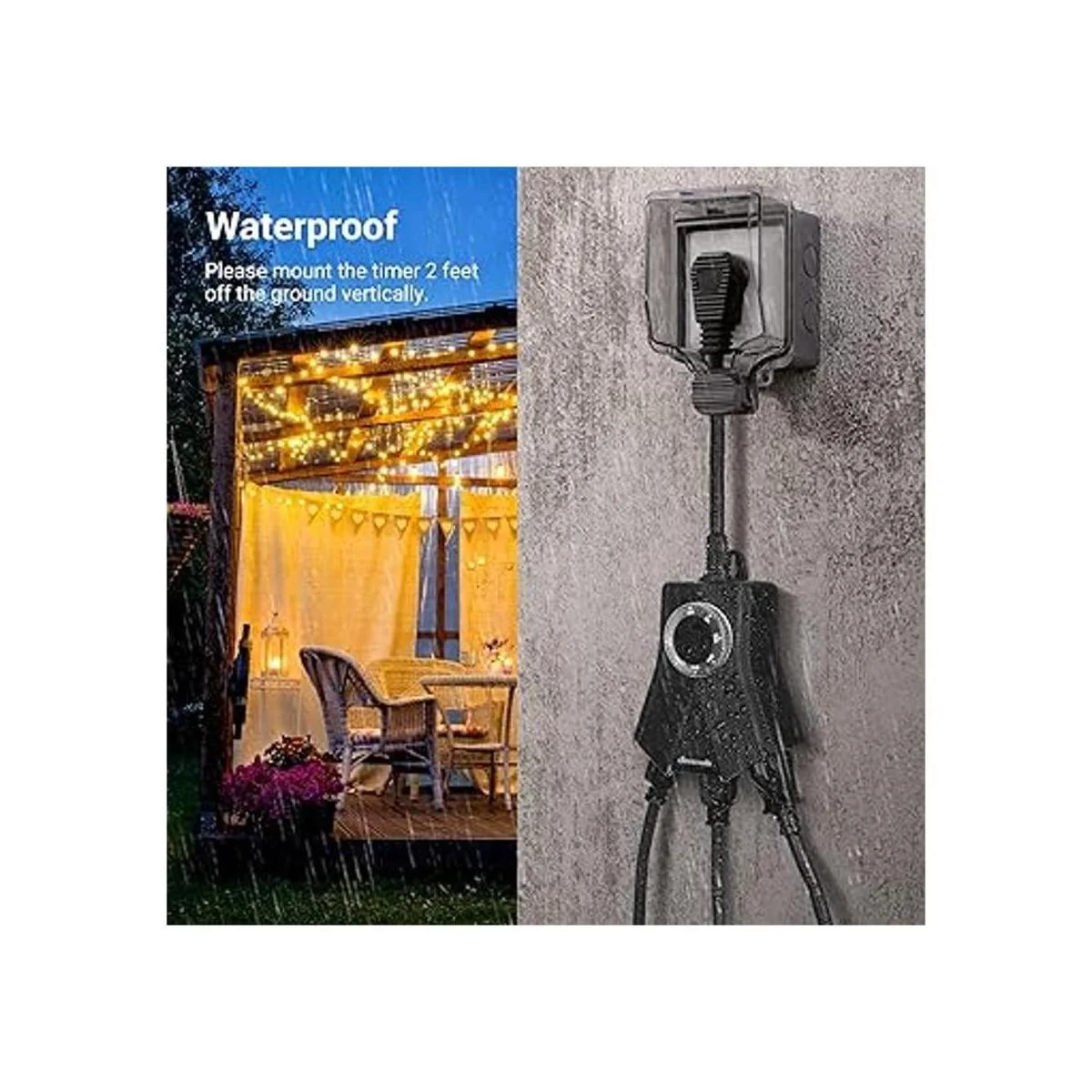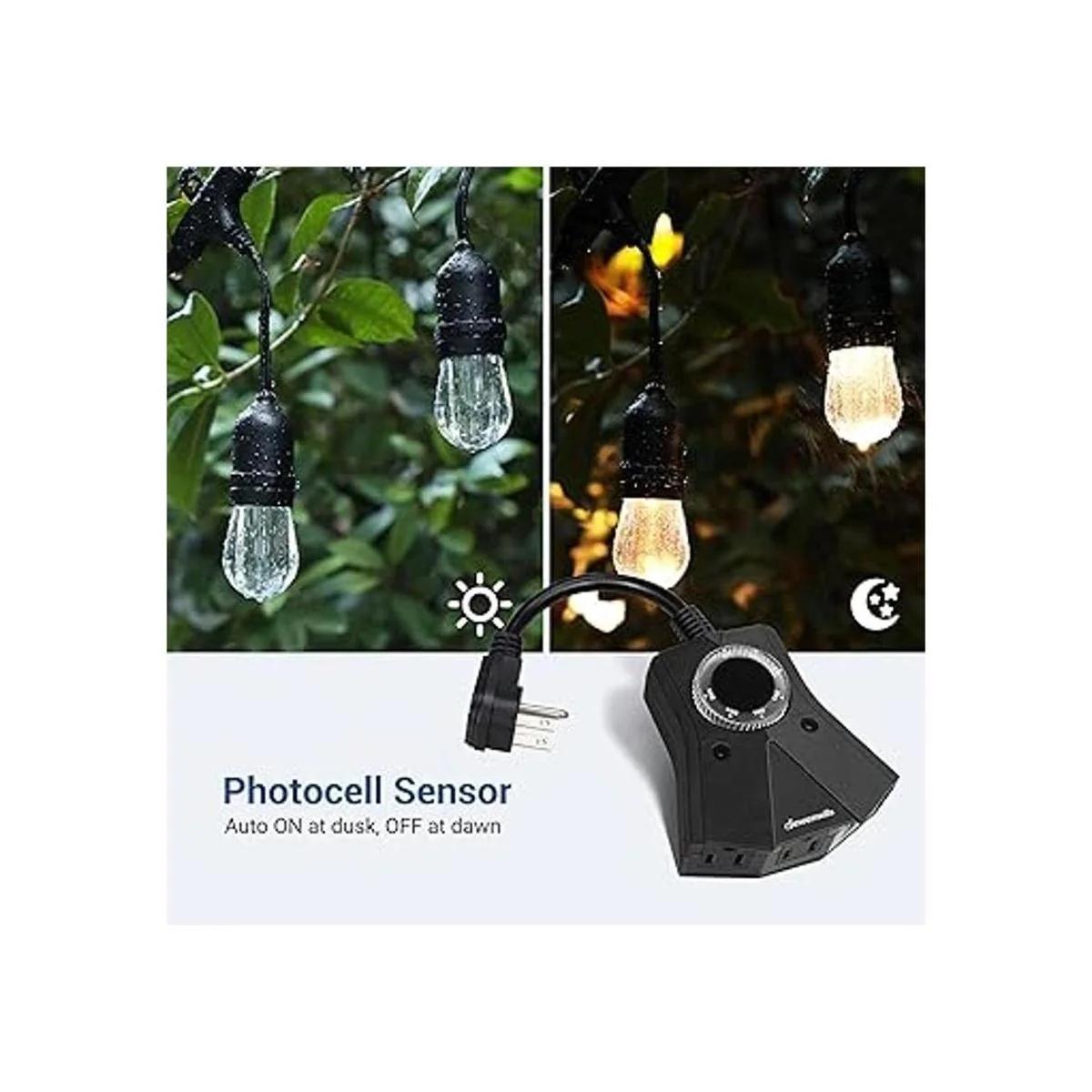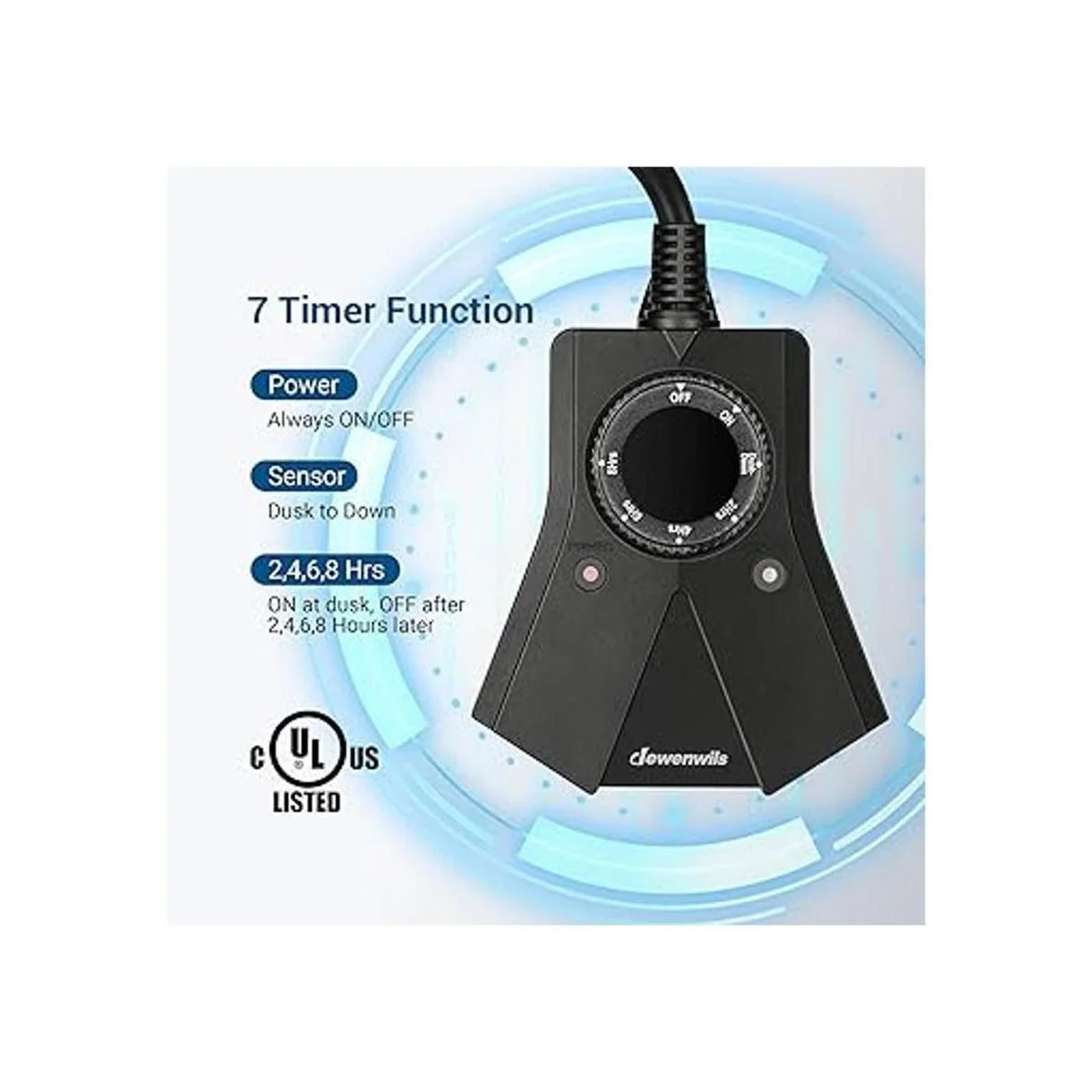 DEWENWILS Temporizador de luz de Navidad para exteriores, resistente a la intemperie, toma de corriente enchufable, con sensor de fotocélula, del atardecer al amanecer y temporizador de cuenta regresiva de 2468 para decoraciones navideñas, cadena de luces con certificación UL