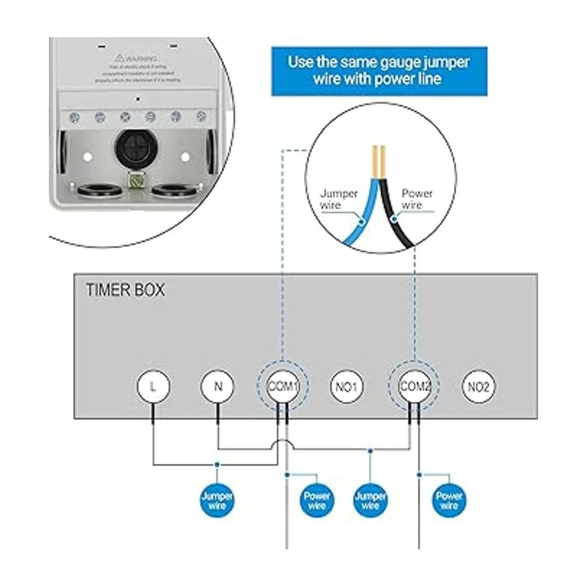 Fácil de instalar: el módulo de temporizador es extraíble, se puede desasociar de la caja para proporcionar suficiente espacio y comodidad para cableado y ajustes; los agujeros de cableado tienen 2 tamaños 1/2 pulgadas 3/4 pulgadas para elegir, mientras que las tapas de cableado también están incluidas para una fácil instalación