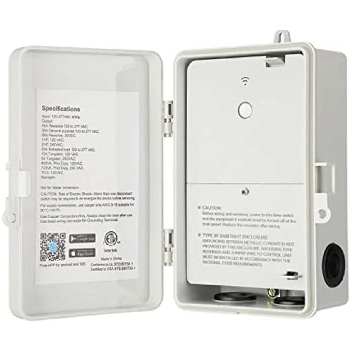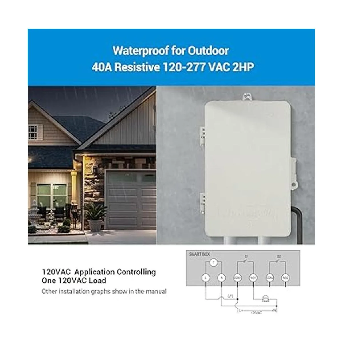 Carga de alta potencia: carga máxima de 40 amperios 120277 V CA 2 HP, funcionamiento de 120277 VAC, ideal para aplicaciones resistentes al aire libre e interior como calentadores de agua, bombas de piscina, fuentes, spa, cortacésped, aire acondicionado y otros motores de equipos, etc. Puede controlar 1 dispositivo o 2 dispositivos simultáneamente