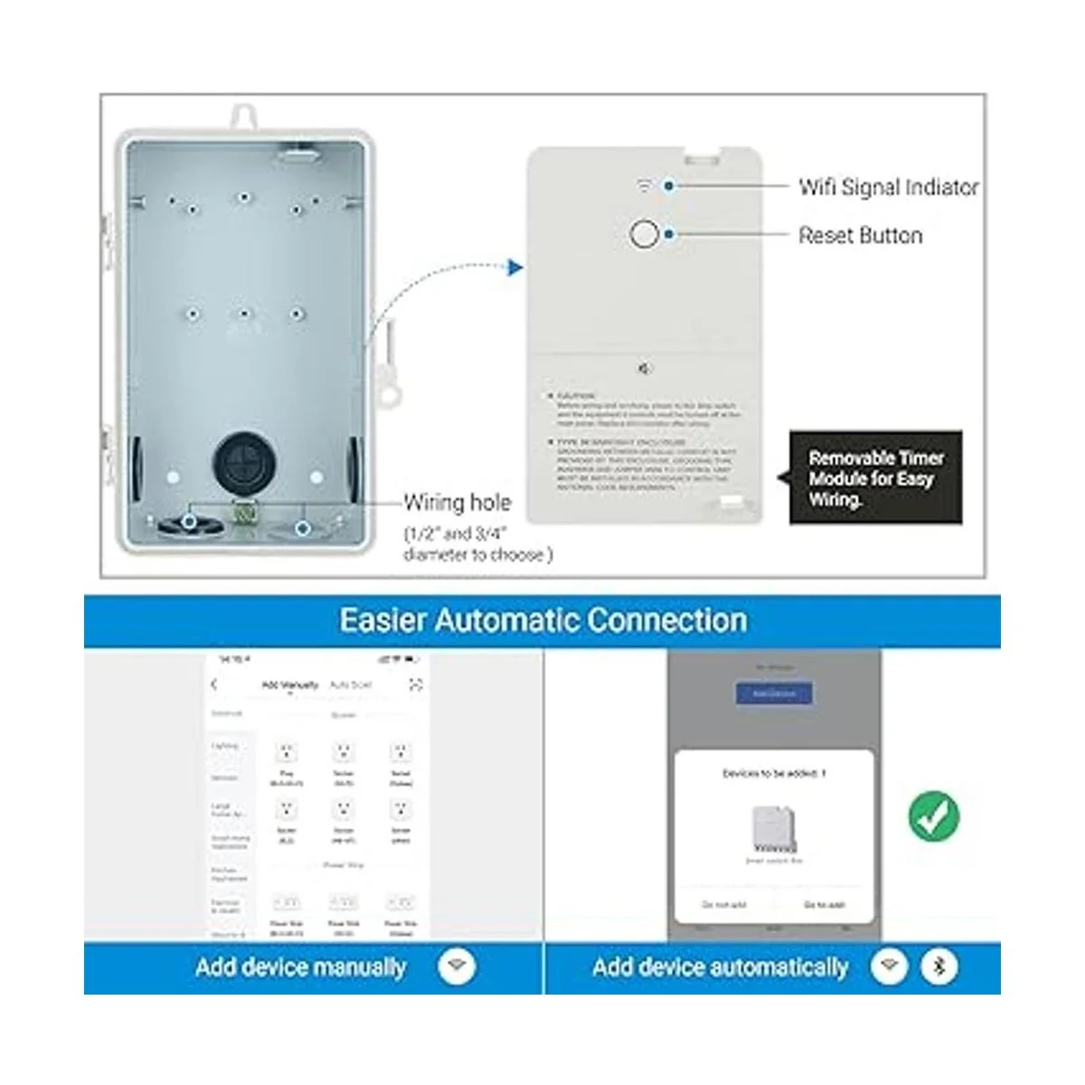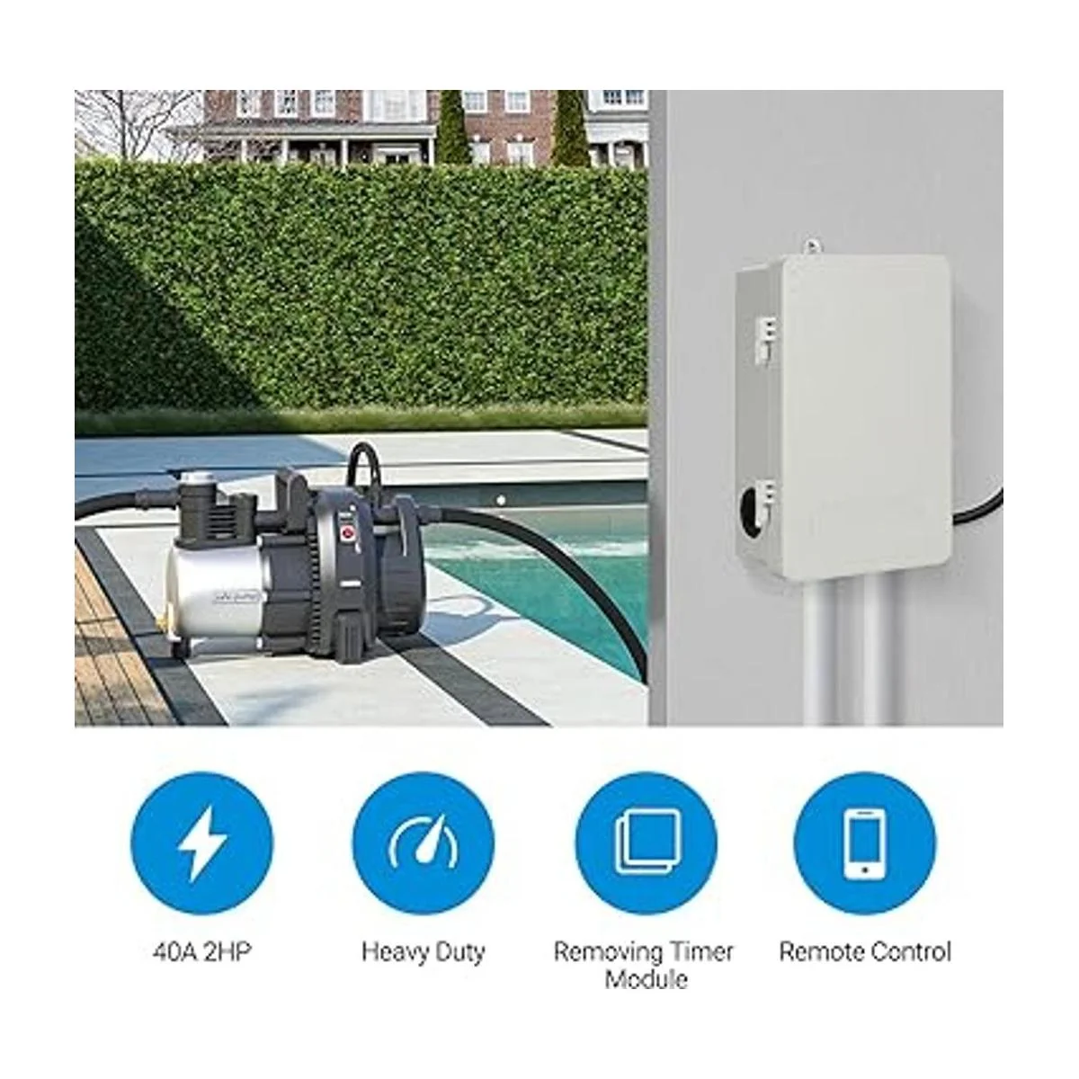 DEWENWILS Temporizador de piscina, interruptor de temporizador WiFi, resistente 40A 120277 VCA 2HP, compatible con teléfono inteligente, Alexa, Google Assistant, certificación ETL