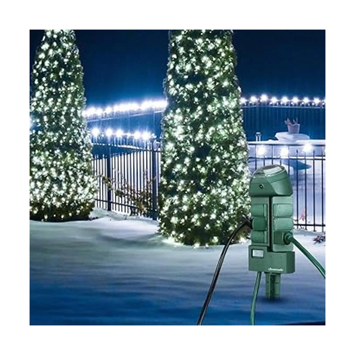 Resistente a la intemperie para uso en exteriores: el temporizador de 6 salidas de estaca de patio tiene cubiertas impermeables individuales que las protegen del agua, el polvo y los daños, perfecto para luces al aire libre, decoraciones de Navidad