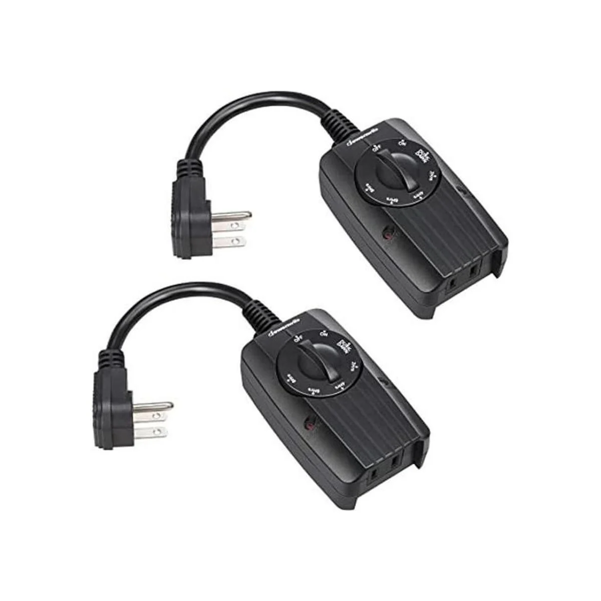 Salida a tierra: ideal para controlar luces de Navidad/vacaciones, cadena de luces al aire libre y otras luces decorativas de jardín, 2 temporizadores en el paquete dan otra opción para controlar más dispositivos a distancia
