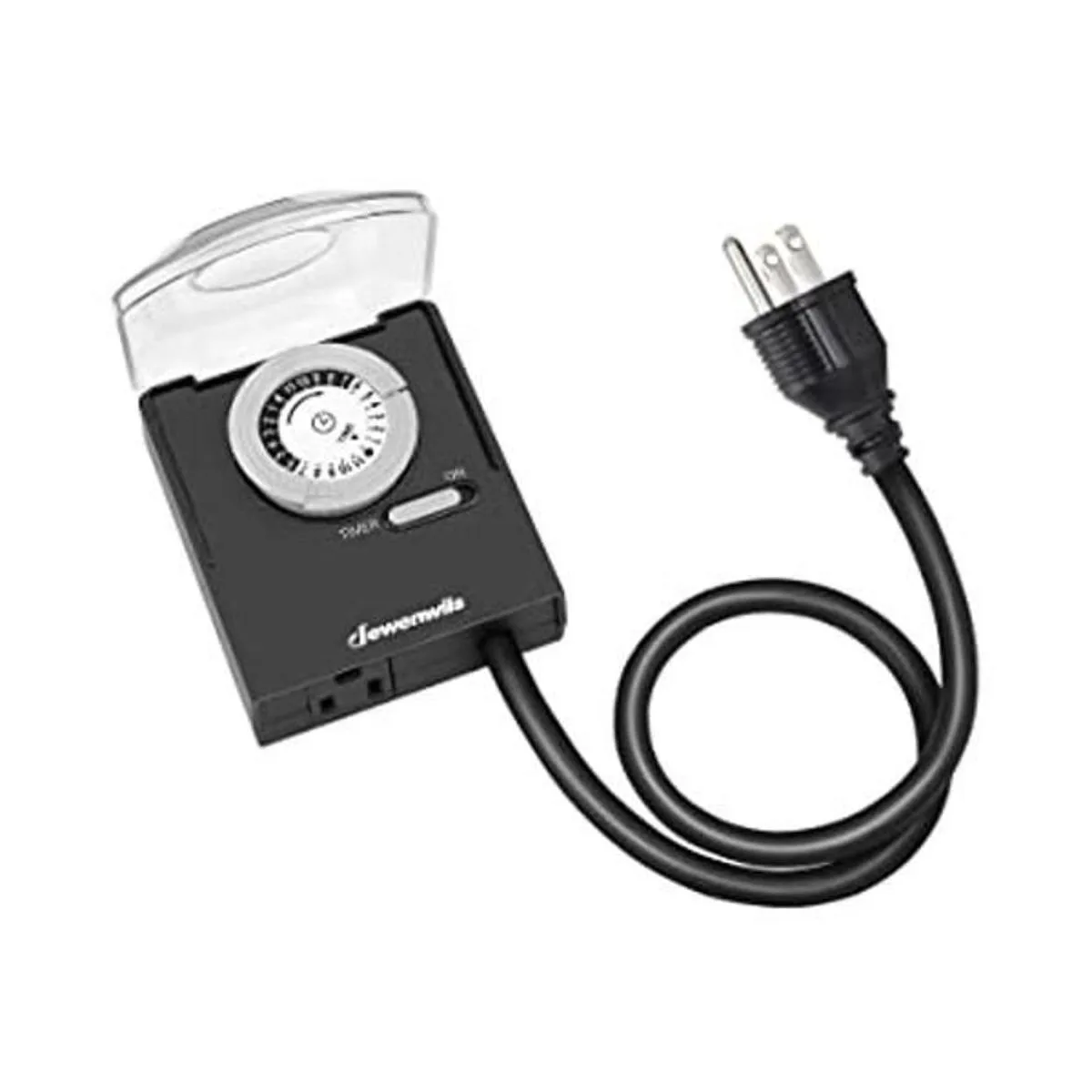 DEWENWILS Temporizador para exteriores con cable de 2 pies de largo, temporizador de luz impermeable con toma eléctrica a tierra, interruptor de temporizador de enchufe para decoraciones de Halloween, luces de Navidad, 15A, 12 HP, listado UL
