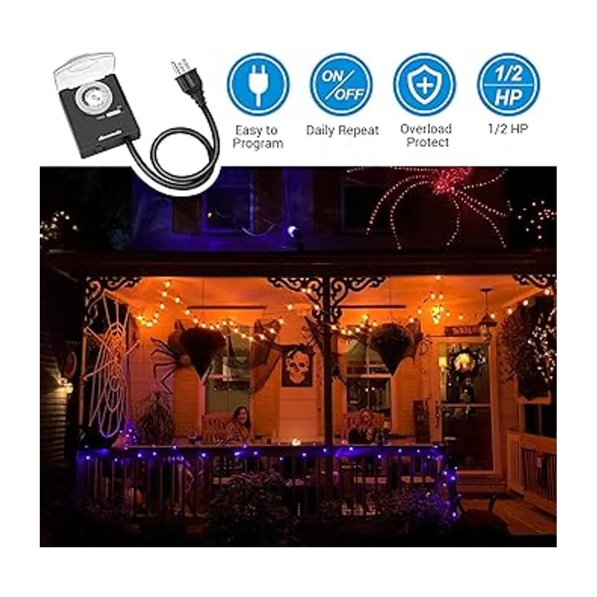 Para uso en exteriores: la cubierta impermeable protege el temporizador del agua, el polvo y los daños, lo que es ideal para las luces de jardín al aire libre/paisaje, luces de Navidad y otras tomas eléctricas
