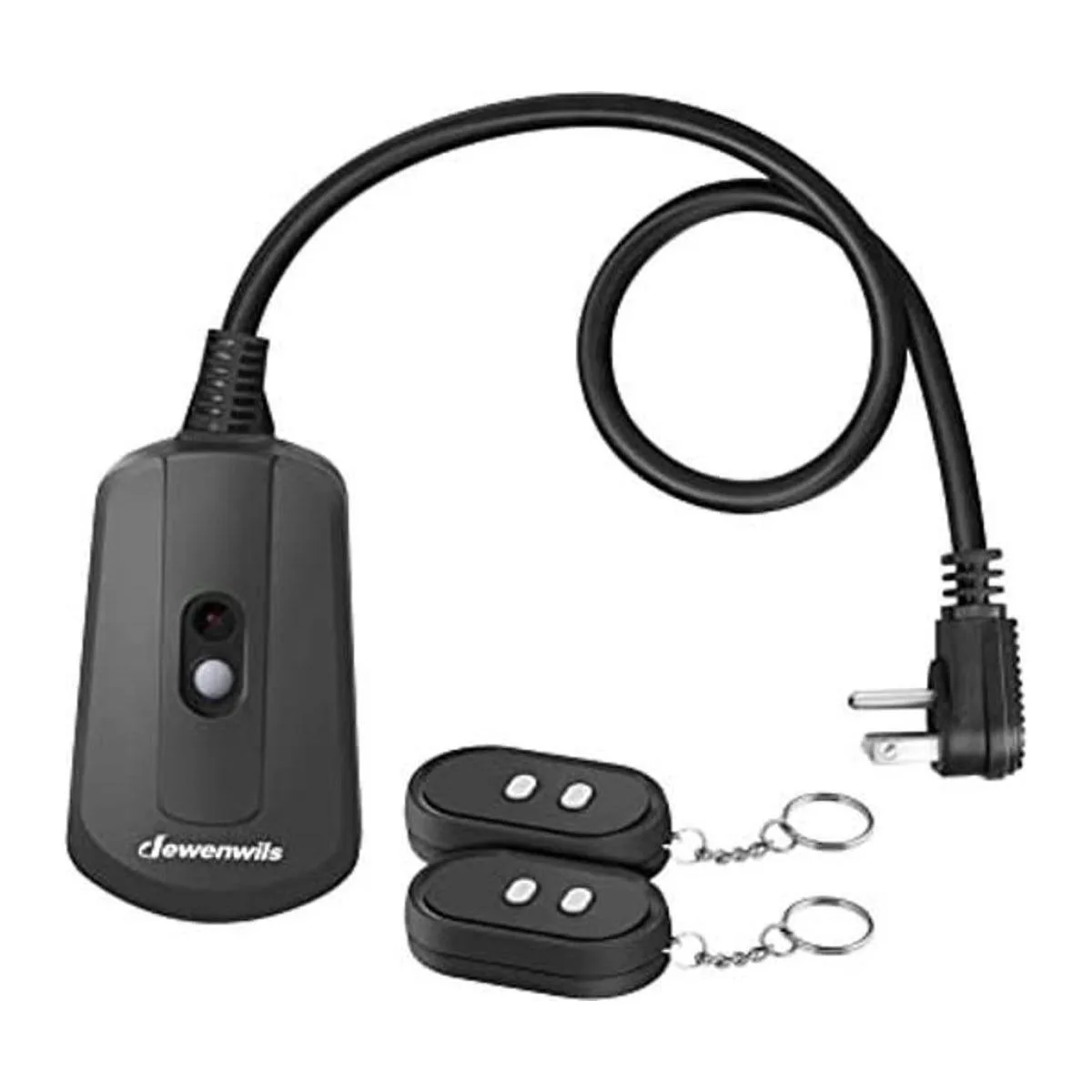 Salida remota resistente: hasta 15 A/1875 W resistente, tungsteno de 1000 W, 1/2 HP; luces de Navidad, decoraciones de vacaciones, accesorios de iluminación de paisaje y otros aparatos con solo pulsar un botón desde el interior de la casa; 2 mandos a distancia disponibles para múltiples usos