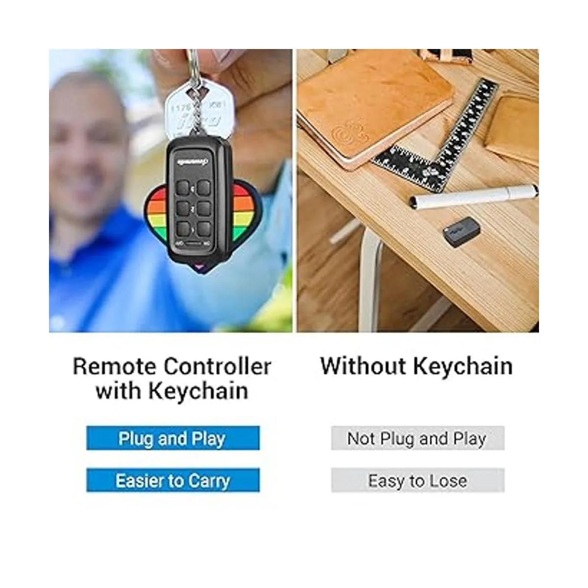 Fuerte señal RF: esta toma remota inalámbrica funciona a través de paredes y puertas sin ninguna interferencia, alcance de hasta 100 pies en áreas abiertas, no requiere línea de visión entre el control remoto y el receptor; el control remoto viene con un llavero, fácil de almacenar