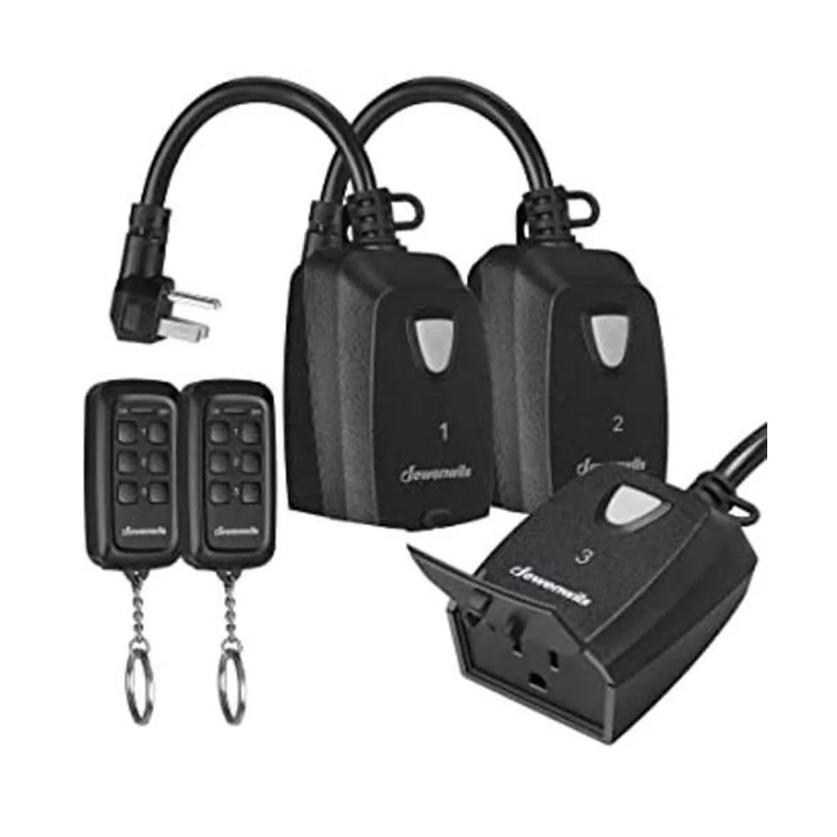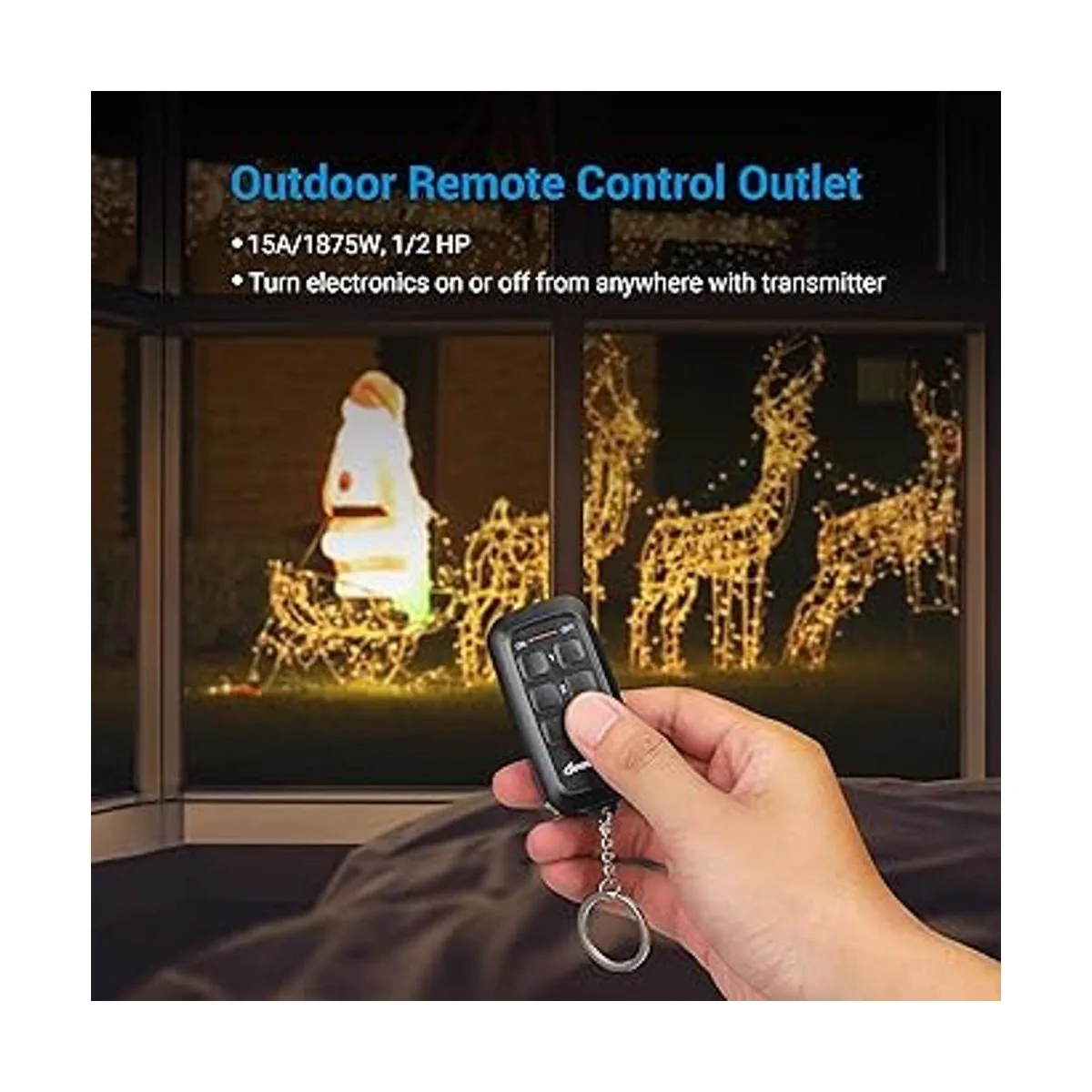 DEWENWILS Toma de control remoto inalámbrica para interiores y exteriores con 2 controles remotos, enchufe remoto de 3 clavijas, resistente a la intemperie, 15 A, cable de 7 pulgadas, rango de 100 pies, enchufe eléctrico para lámparaslucesventiladores, certificado ETL