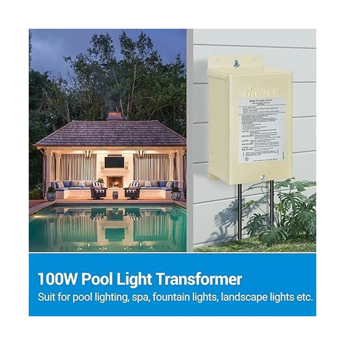 DEWENWILS Transformador de luz de piscina de 100 W, 120 V CA a 12 V13 V14 V CA, transformador de bajo voltaje multigrifo para iluminación de piscina, spa, luces de paisaje y fuente, productos de iluminación al aire libre, certificación UL