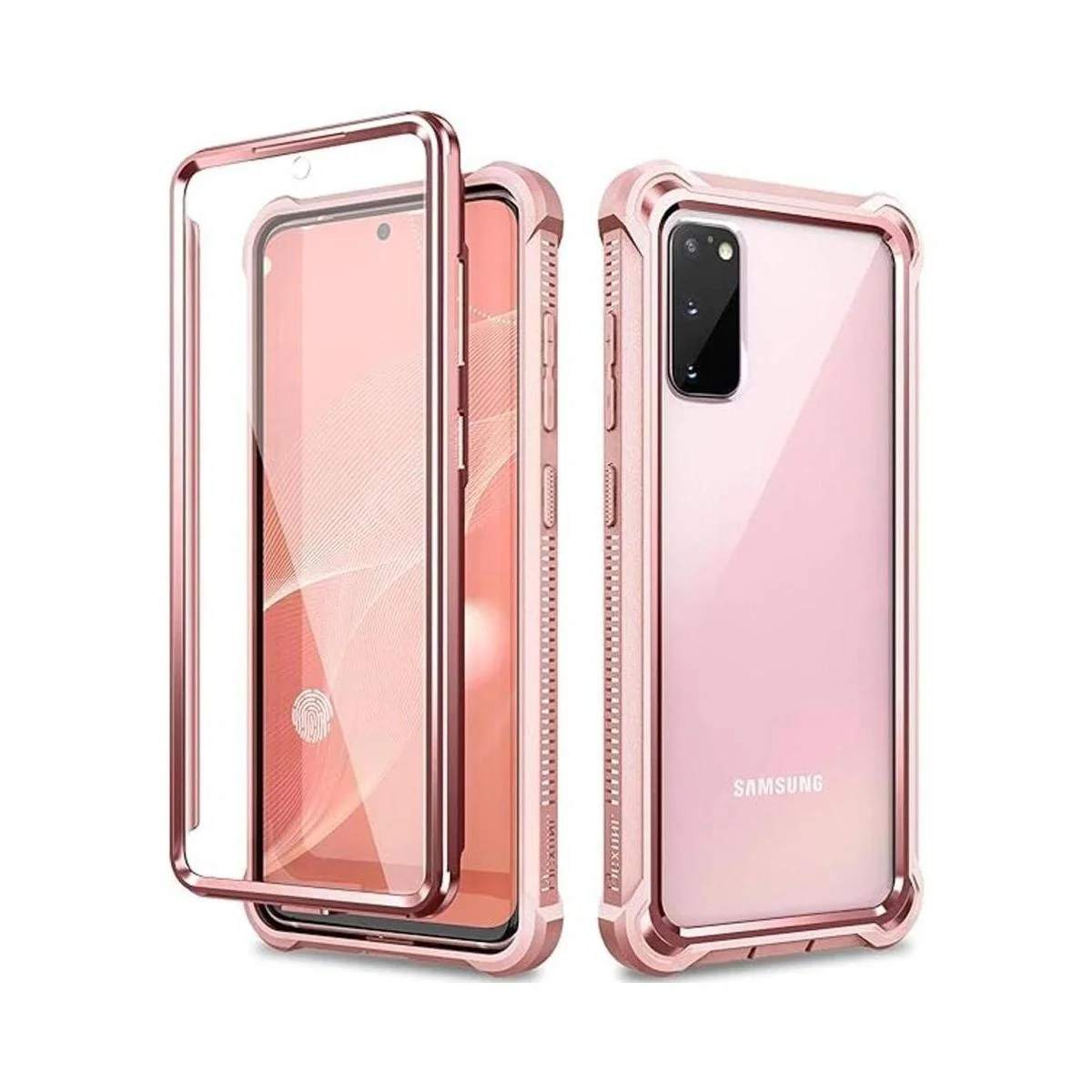 Dexnor Funda para Galaxy S20 con protector de pantalla de metal galvanizado transparente 360 de cuerpo completo, resistente a prueba de golpes, funda protectora protectora resistente para Samsung Galaxy S20 5G, color rosa