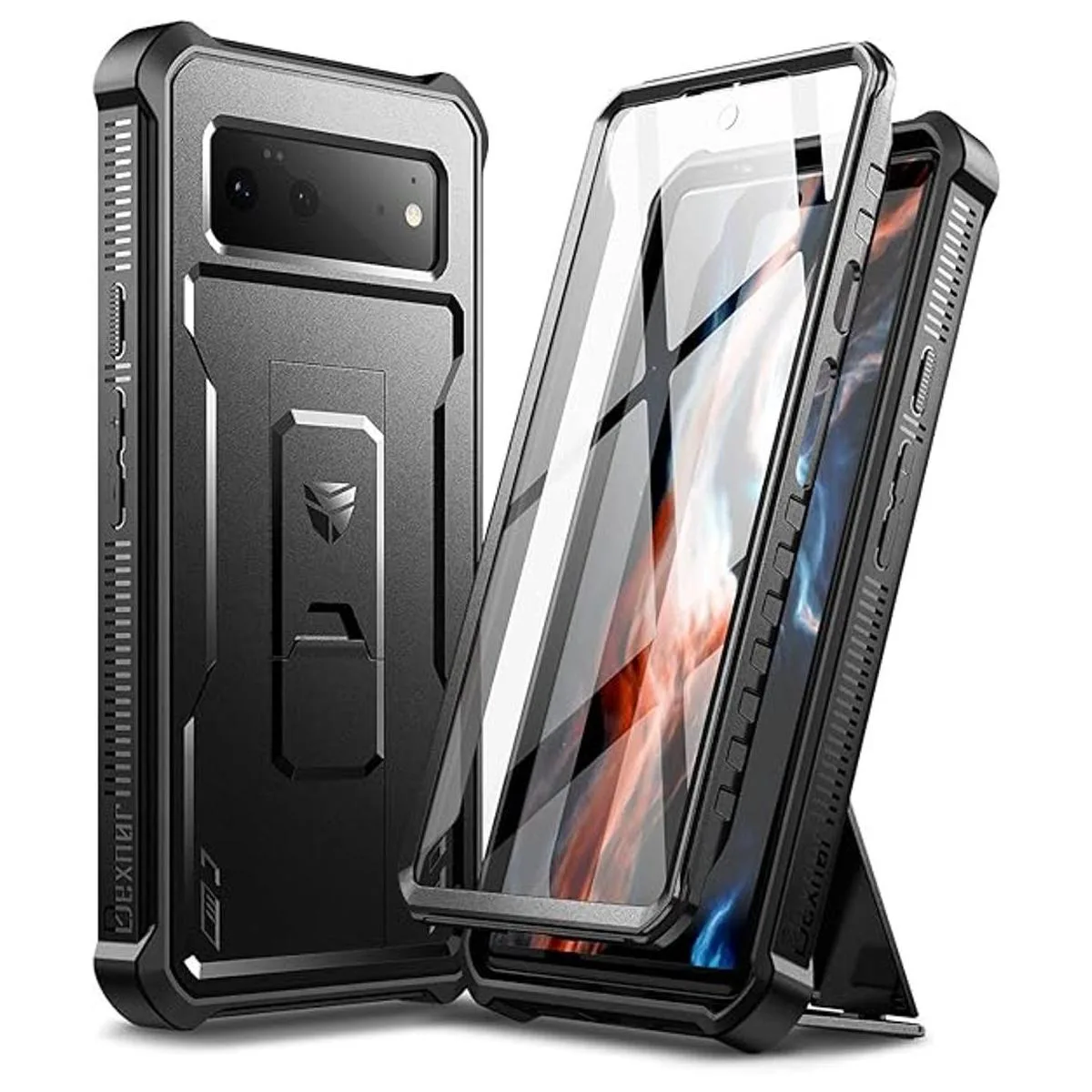 Dexnor Funda para Google Pixel 6, protector de pantalla integrado y soporte, protección de grado militar resistente a prueba de golpes para Google Pixel 6 5G negro
