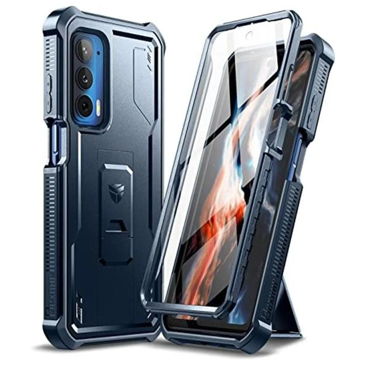 Dexnor Funda para Motorola Moto Edge 2021 Funda Motorola Edge 5G UW Protector de pantalla integrado y soporte Protección de grado militar resistente a prueba de golpes para hombres y mujeres azul marino
