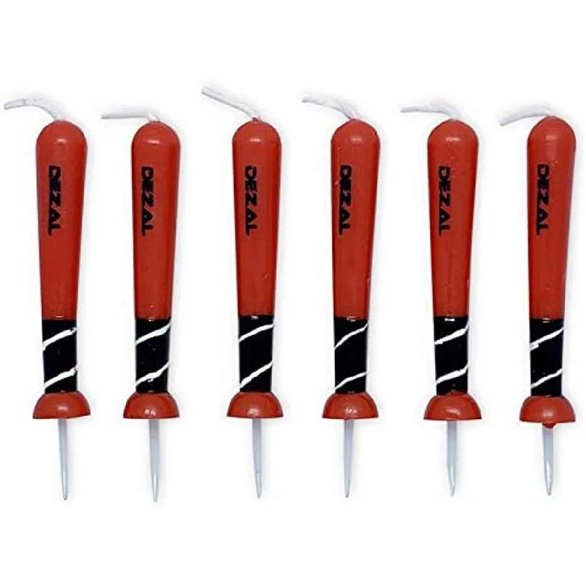 DEZAL Velas rojas de bate de béisbol y bate de sóftbol paquete de 6 para suministros y decoraciones de fiesta de cumpleaños de béisbol, velas para cupcakes y tartas de cumpleaños para fanáticos del softball Fastpitch y del béisbol