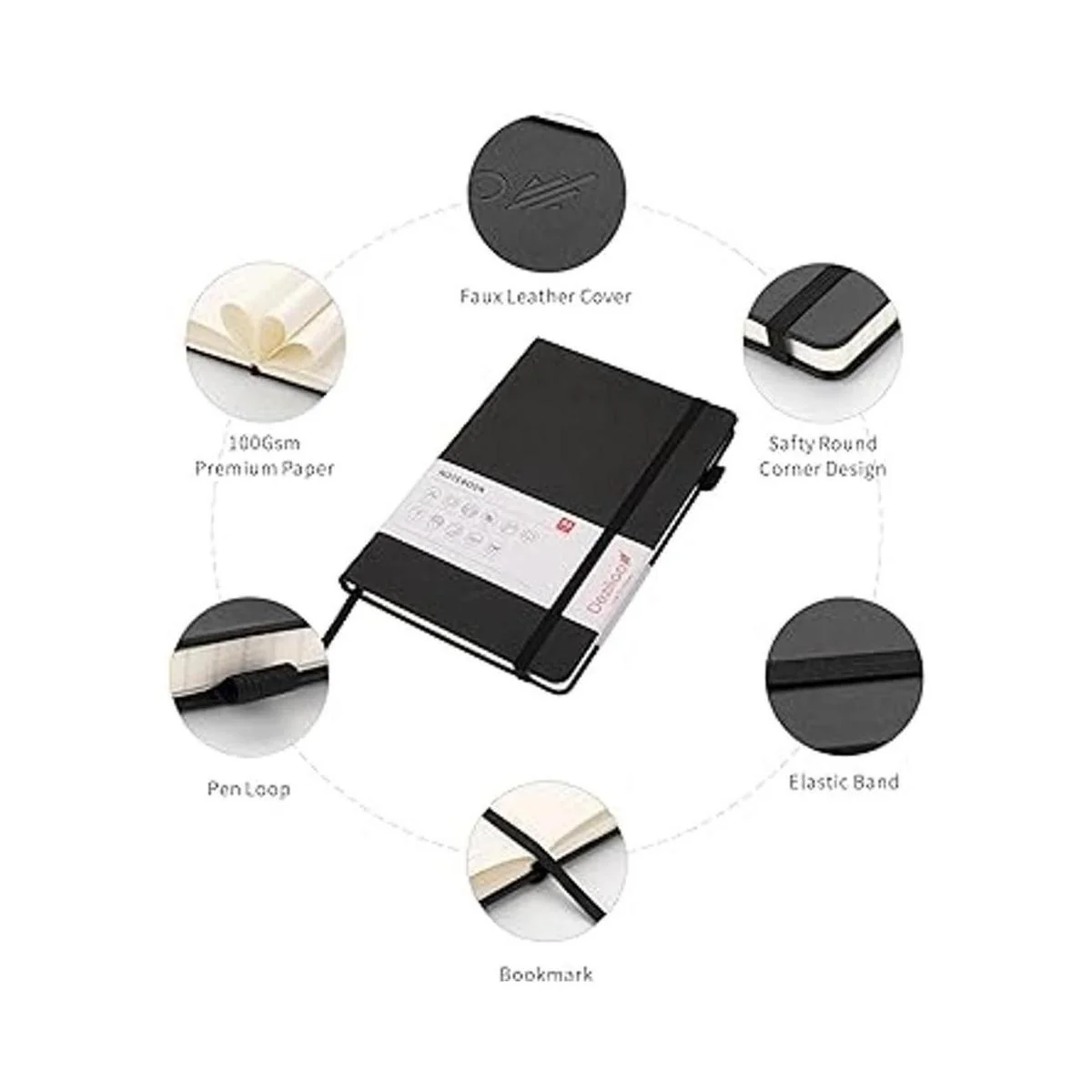 Diario de tapa dura: Este cuaderno forrado de Deziliao tiene 72 hojas, 144 páginas, papel marfil de 100 Gsm, 1 lazo para bolígrafo, 1 cinta marcadora de páginas, 1 bolsillo interior y una banda elástica de cierre. 10 hojas de papel microperforado para facilitar el arranque o archivo en cualquier momento.
