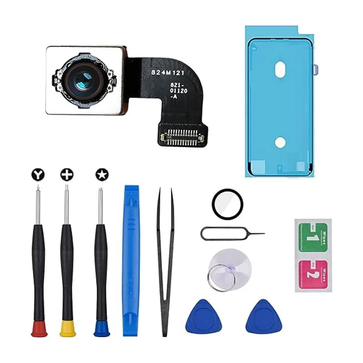 DGSCSMY Cámara trasera de repuesto para iPhone 8 de 12 MP de ancho para cámara trasera ancho, cable flexible de repuesto con repuesto de vidrio y kit de herramientas de sellado impermeable