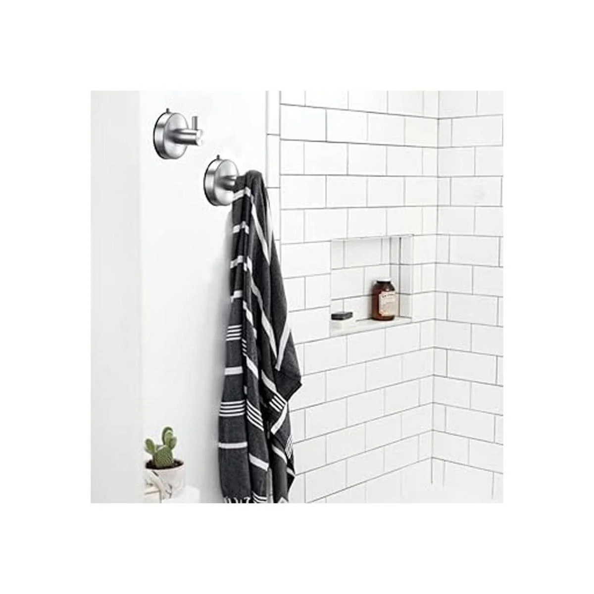 Amplio uso y nota: los ganchos de ventosa solo se fijan a superficies lisas, limpias, planas y no porosas. Como vidrio, espejo, azulejos lisos, acero inoxidable, plástico, acrílico, mármol cultivado, metal pulido, etc. No se puede utilizar en superficies rugosas o paredes de cemento de cal, papel de pared, madera no pintada, mosaico.