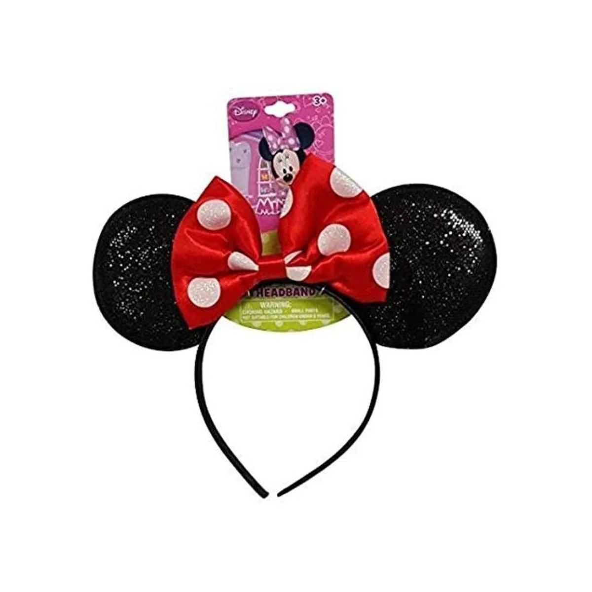 Diadema de Minnie Mouse con orejas brillosas y lazo rojo Disney Oficial 1 unidad