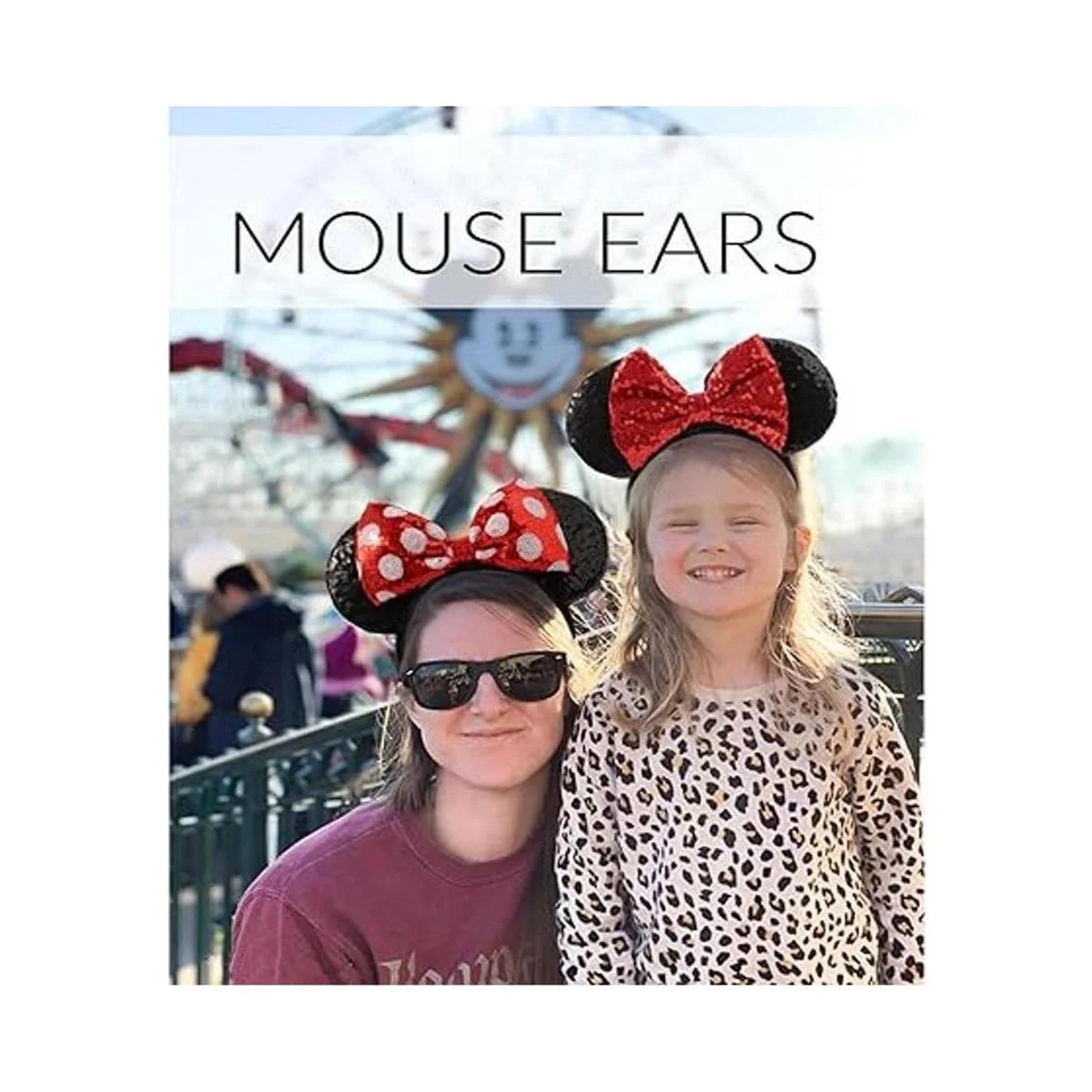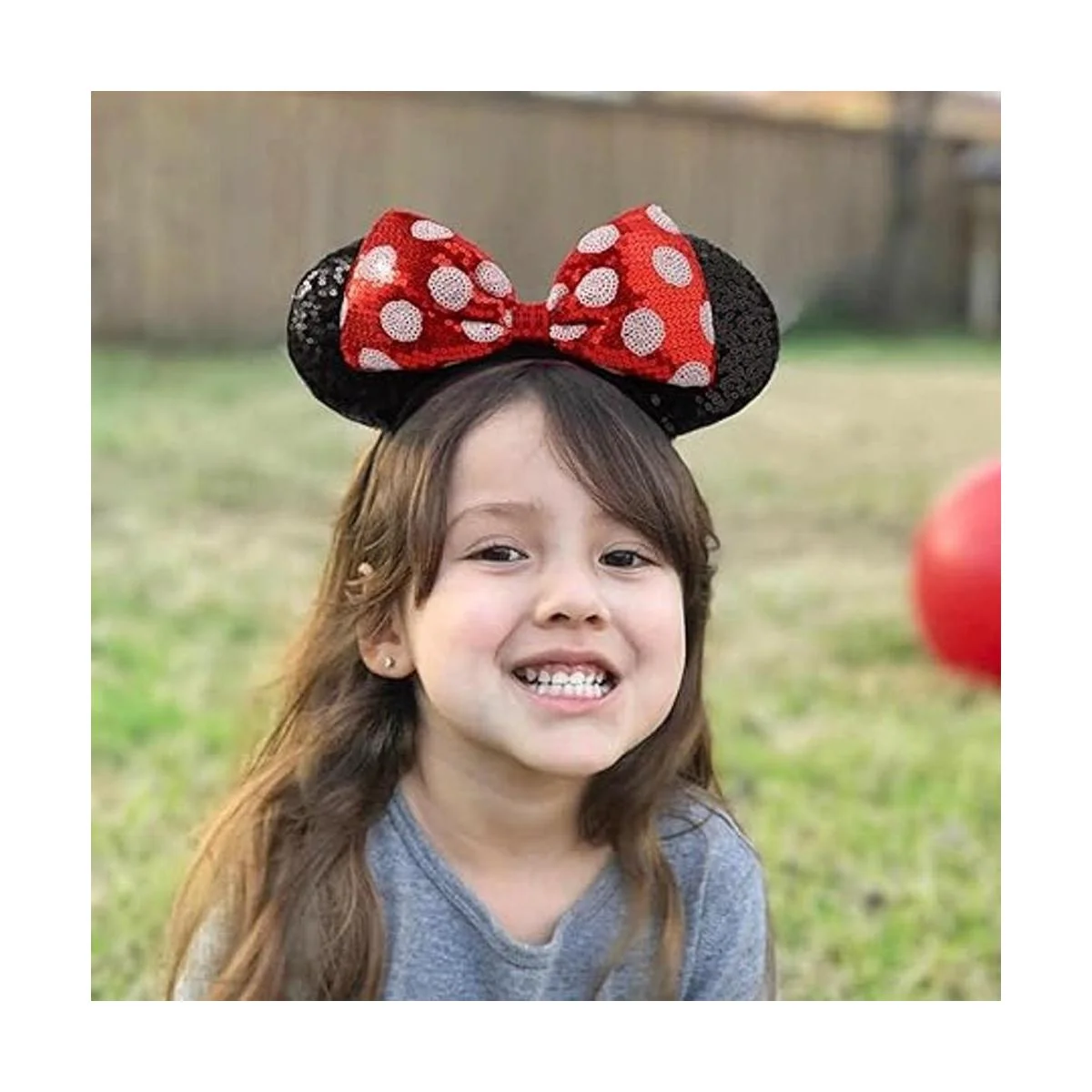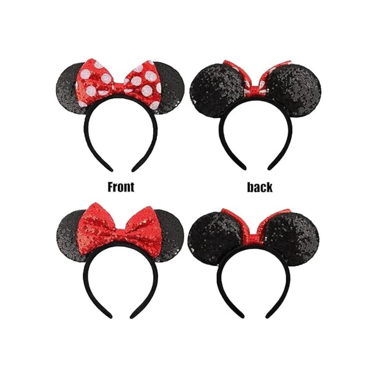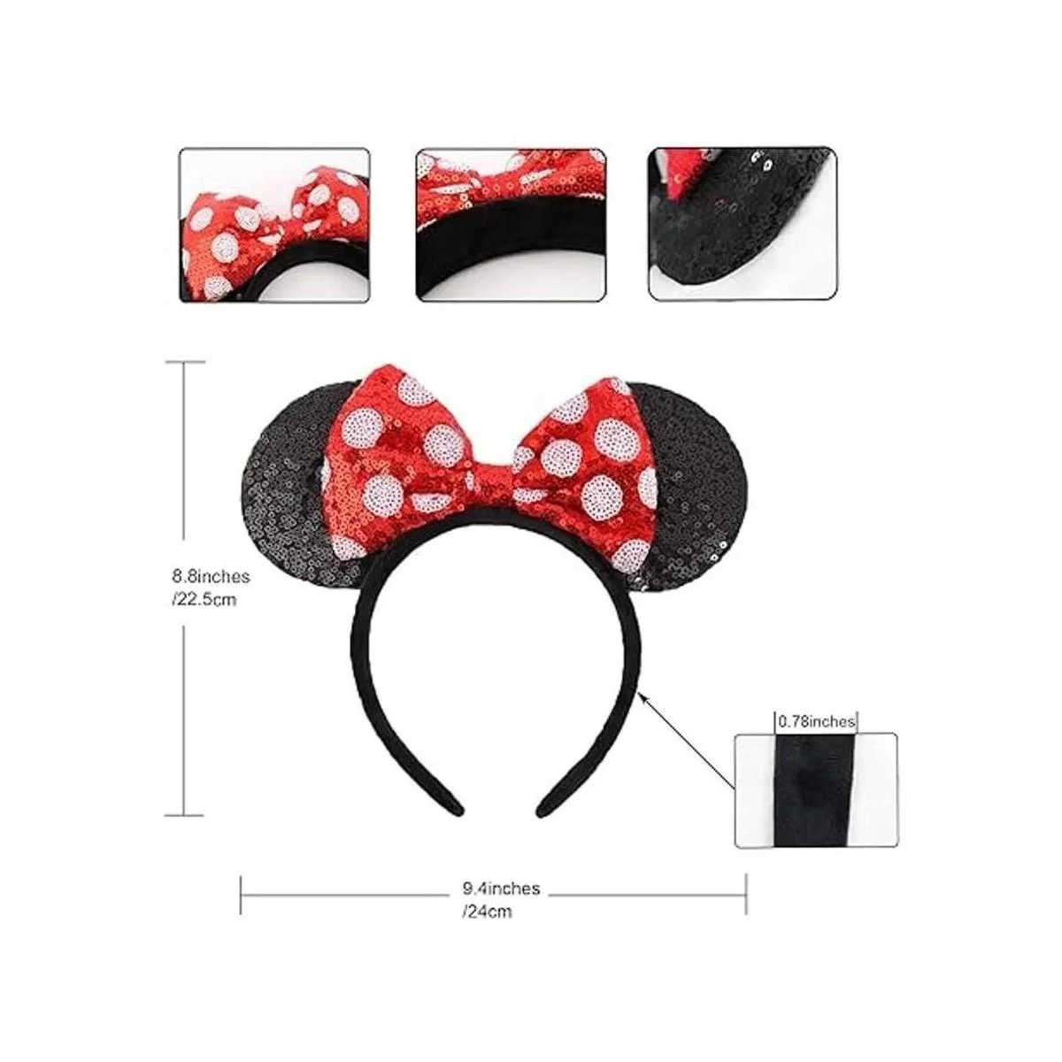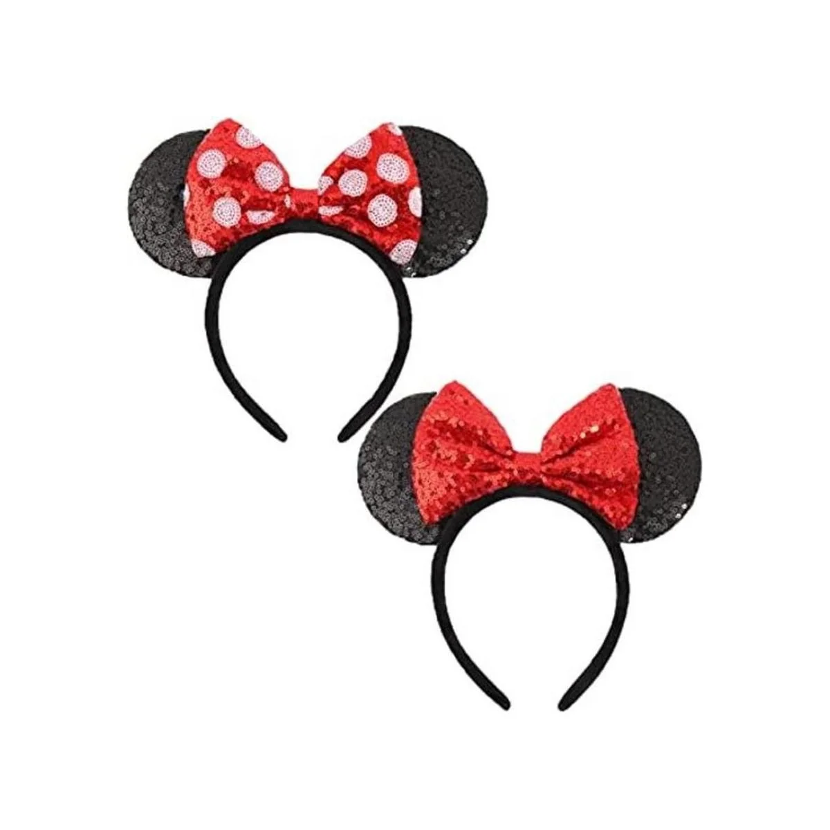 Diademas de lazo con orejas de ratón, 2 piezas de diadema de lentejuelas brillantes clásicas con orejas de ratón para mujeres adultas y niñas lentejuelas rojas y puntos rojos
