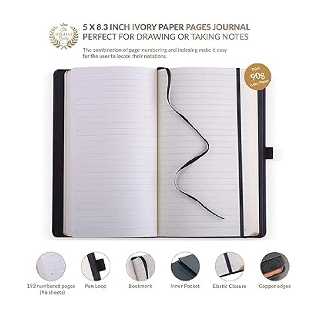 Mientras que otros diarios para mujer tienen páginas de papel finas que permiten que la tinta se corra o simplemente no se ven muy elegantes, nuestros exclusivos cuadernos de escritura están hechos a mano en Italia con papel marfil grueso prémium de 3.17 oz para asegurar que no se traspase y sea fácil escribir con un bolígrafo o lápiz. La lujosa tapa dura no tiene ningún mal olor y la artesanía duradera protege tus preciosas ideas. Valoramos tus prioridades.