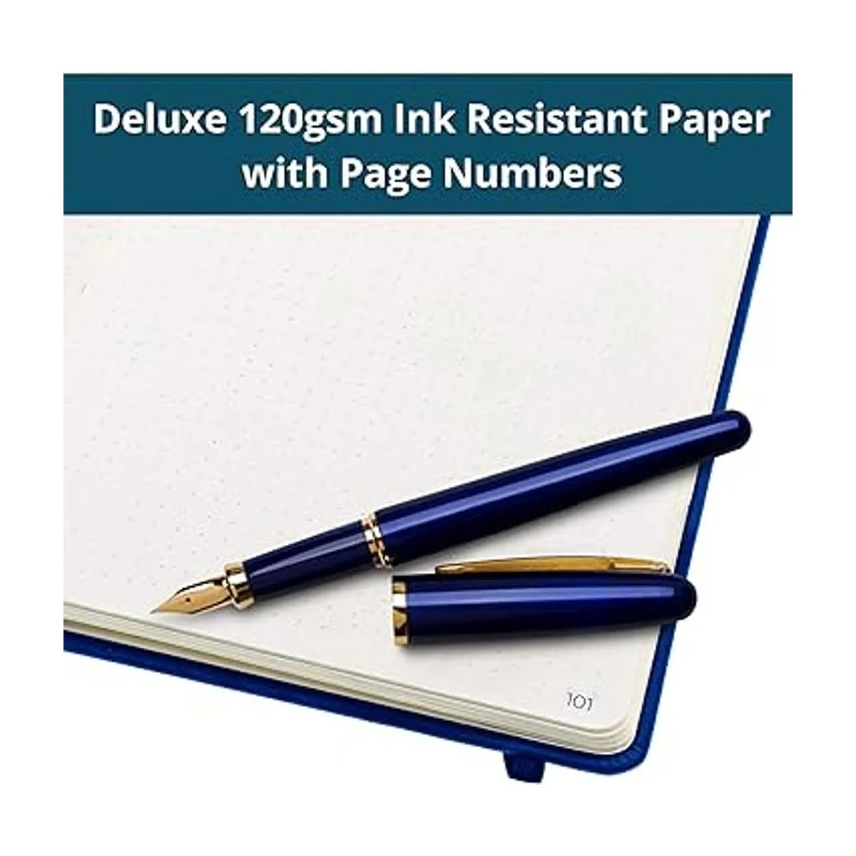 Diario de puntos gruesos Diarios de tapa dura A5 Papel premium a prueba de tinta de 120 GSM con cuadrícula de puntos de 0.197 in, números de página, soporte para bolígrafos, bolsillo y regla, cuadernos de puntos para hombres y mujeres azul