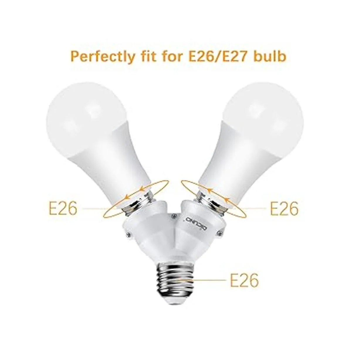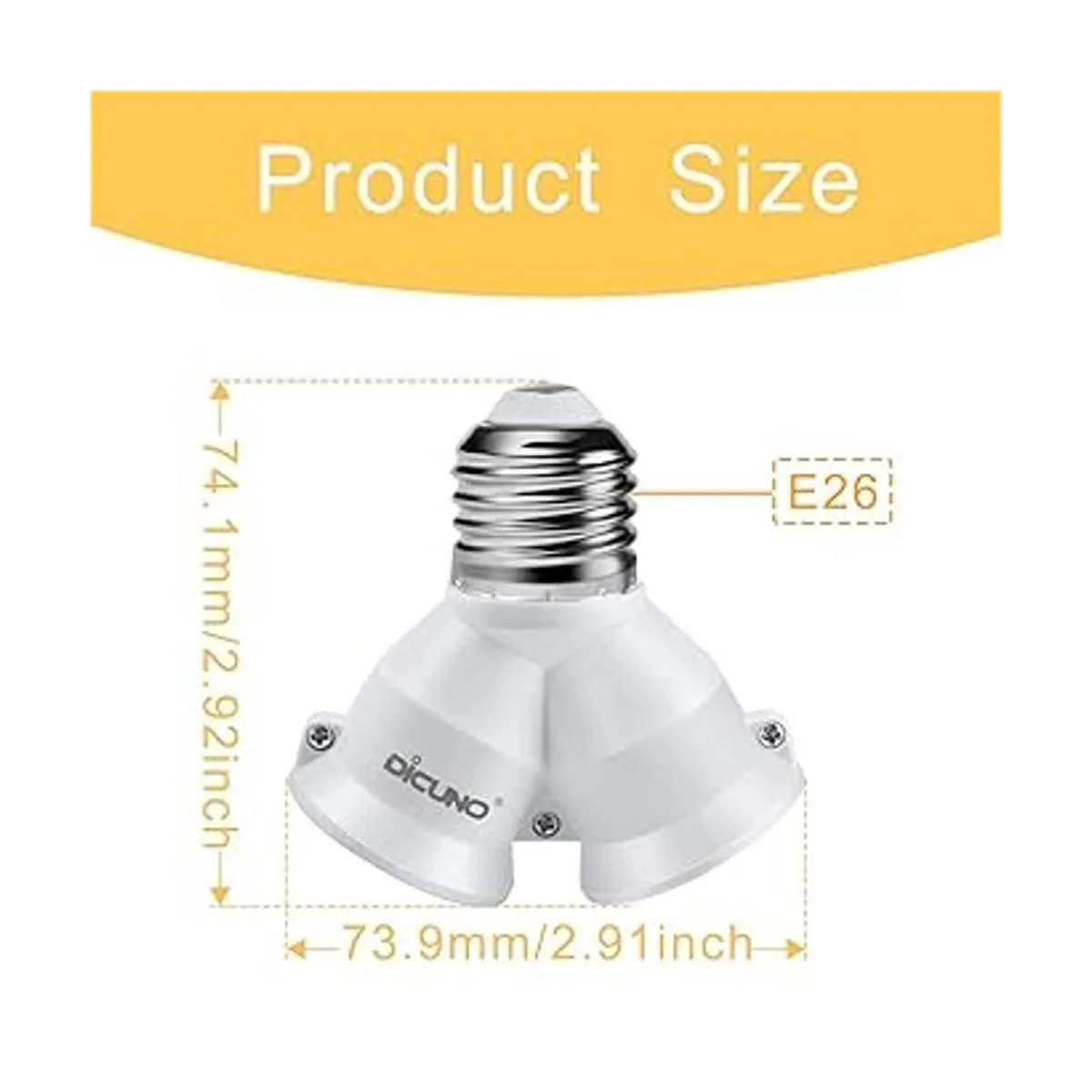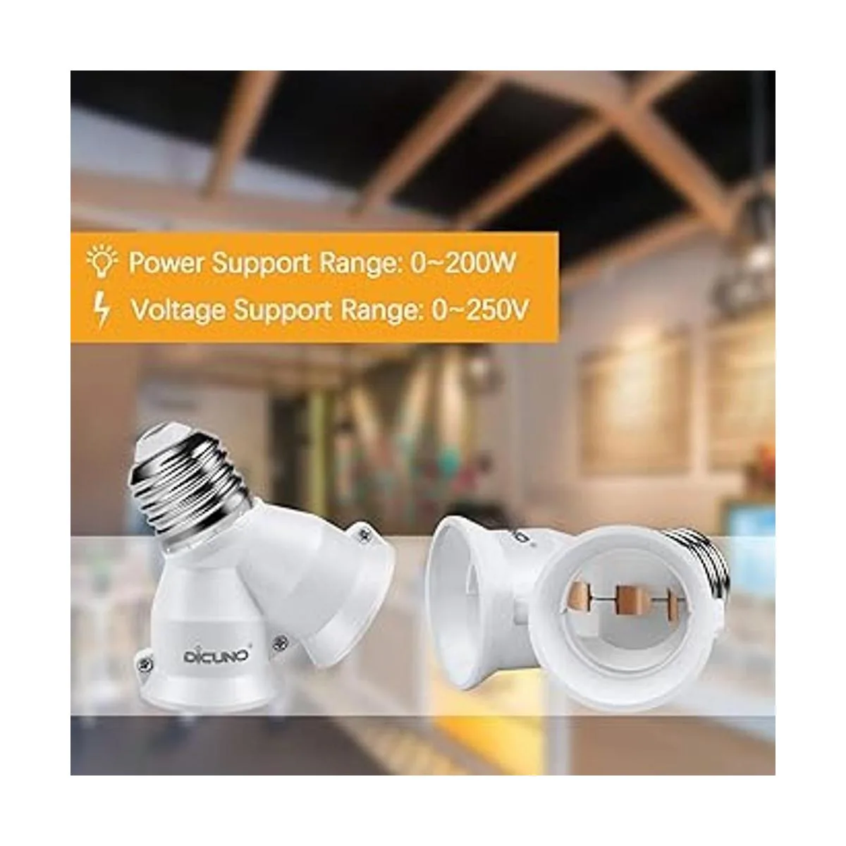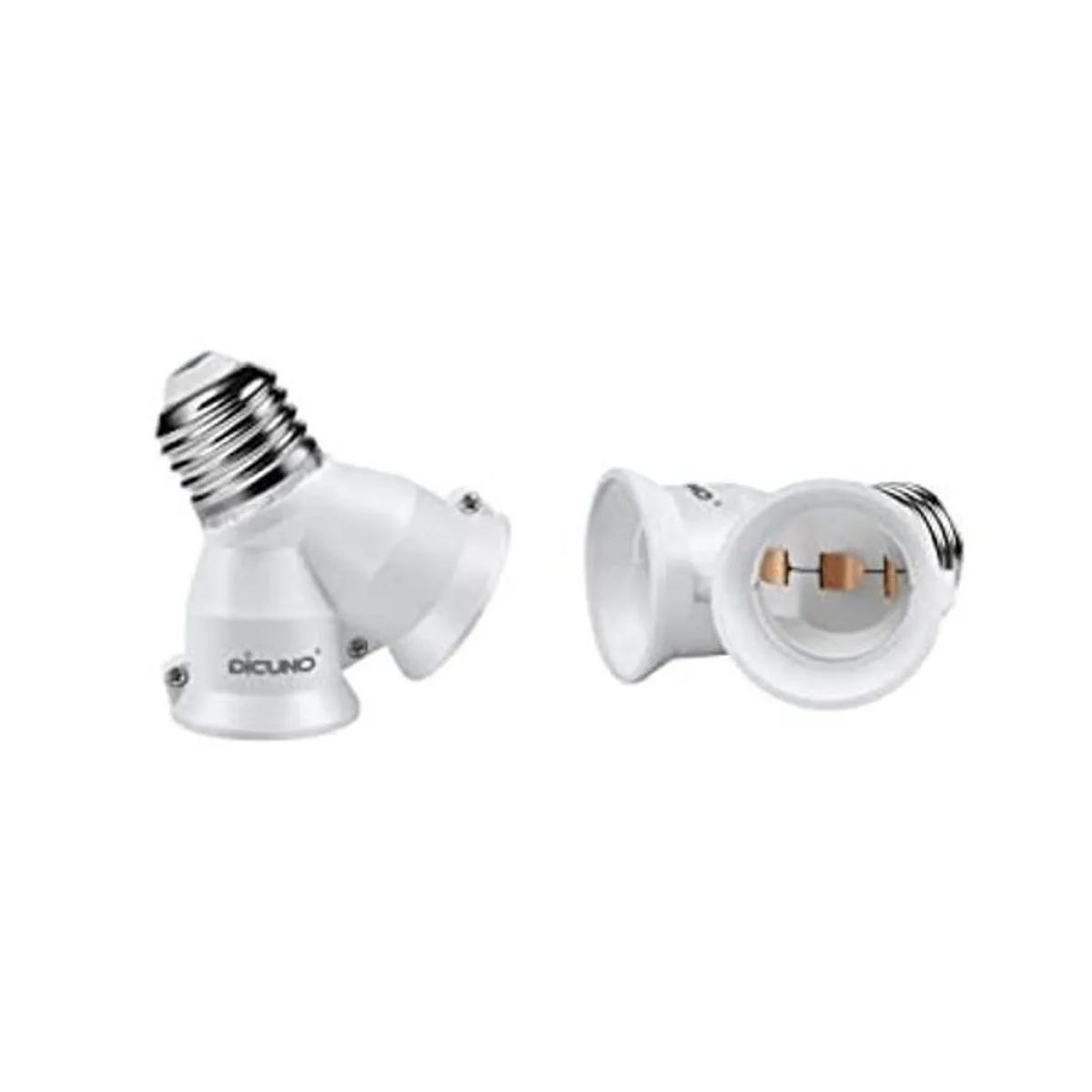 DiCUNO Adaptador divisor de enchufe E26 2 en 1, 2 bombillas estándar E26 de base media en 1 enchufe convertidor de soporte de lámpara en forma de Y, máximo 200 W y 329.0 F resistente al calor, 2 unidades
