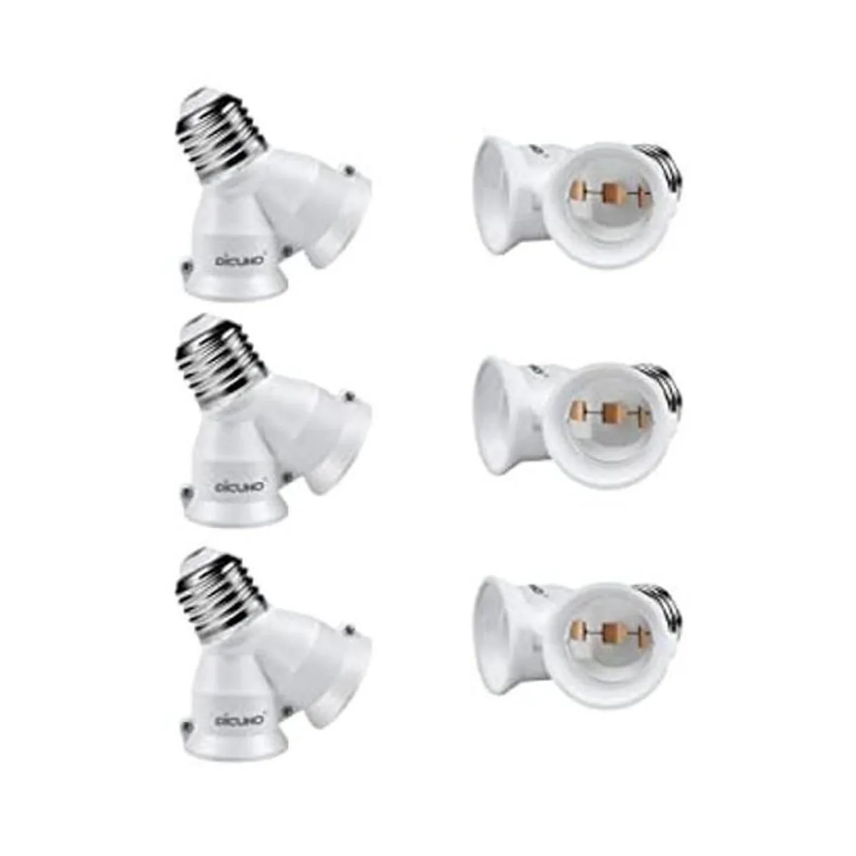 DiCUNO Adaptador divisor de zócalo E26 2 en 1, dos bombillas estándar E26 de base media en un convertidor de soporte de lámpara en forma de Y, máximo 200 W y 329.0 F resistente al calor 6 unidades