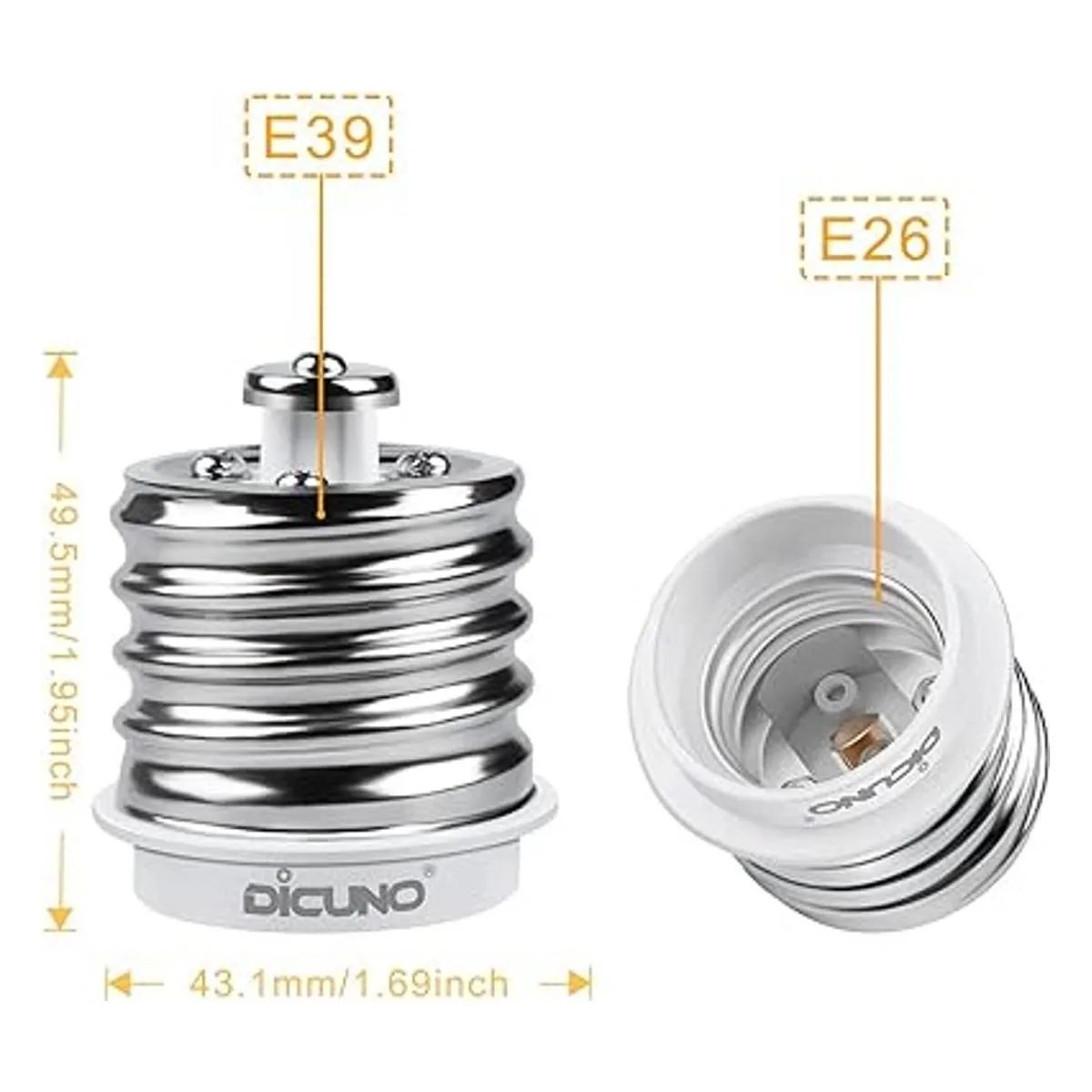 DiCUNO Adaptador E39 a E26, Mogul E39 a E26 estándar E26 Tornillo Base Reductor Convertidor, Máximo 200W y 329.0 F Resistente al Calor 4pcs