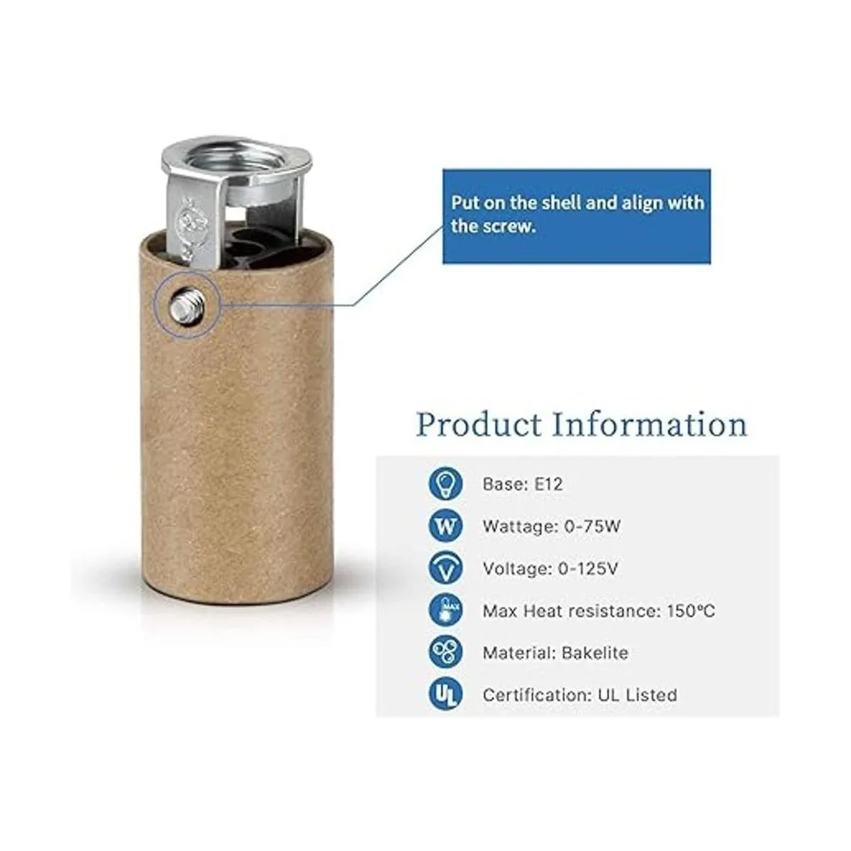 DiCUNO Enchufe de bombilla LED E12, reemplazo de enchufe de base de candelabro, piezas de soporte de lámpara de araña con aislante de cartón, fenólico sin llave, certificación UL, paquete de 6
