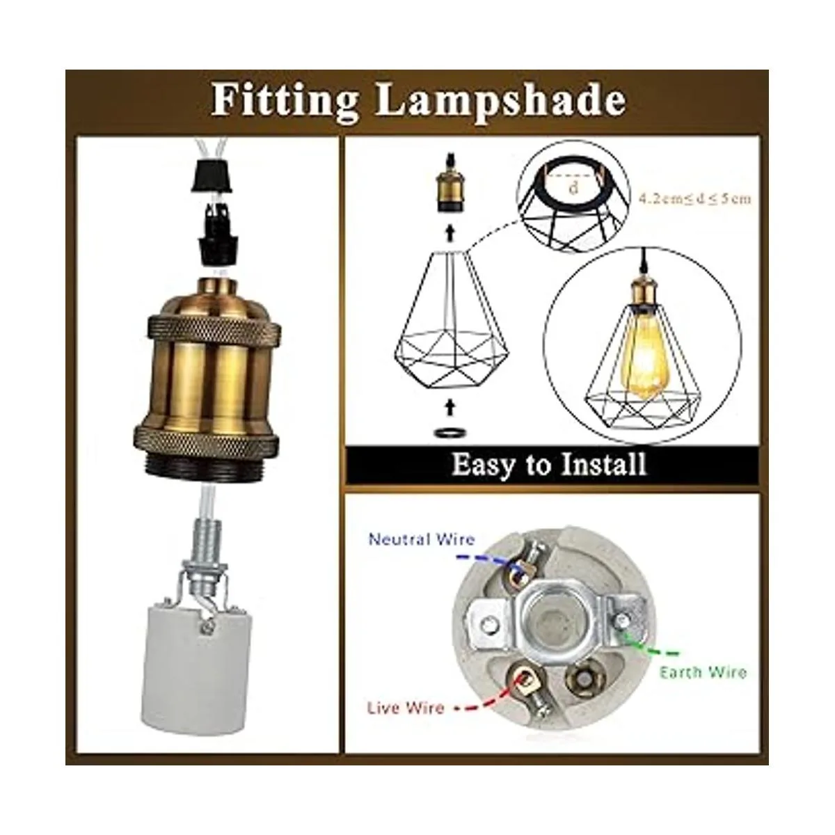 Aplicación: 1 Se utiliza más comúnmente con bombillas Edison vintage E26 y para colgantes, iluminación retro. Crea un ambiente antiguo y clásico para la vida moderna. 2 Pantallas de lámpara añadidas. Diferentes pantallas añadidas y la longitud del alambre ajustable pueden traer varios efectos decorativos.
