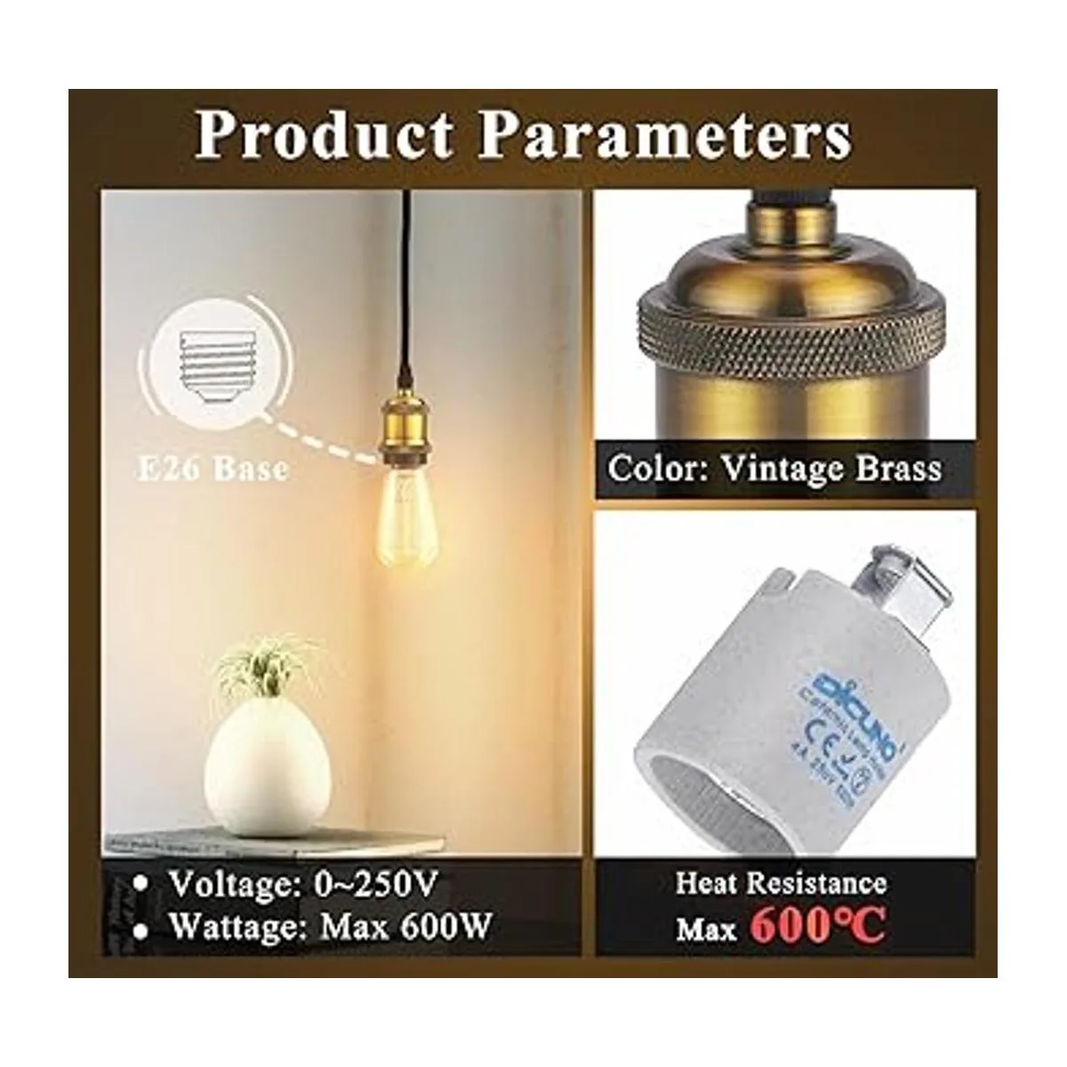 DiCUNO Portalámparas colgante E26 E27 vintage con certificación UL, iluminación que puedes colocar tú mismo para uso industrial y decorativo, resistente al calor hasta 1112F. Paquetes de 4, 6 y 10.