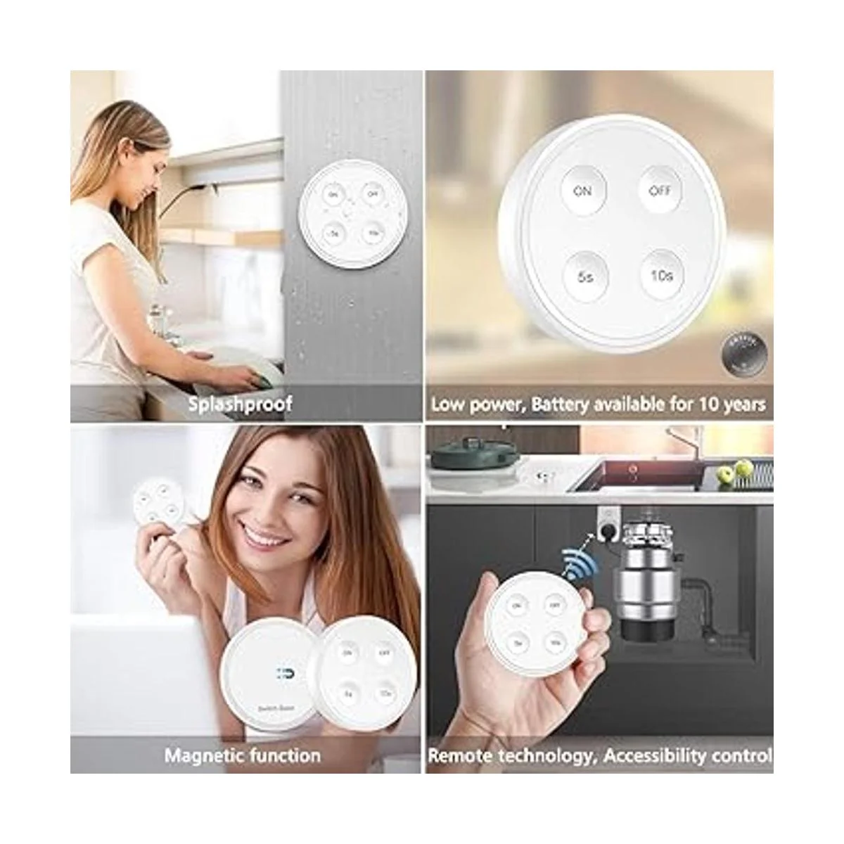 Ahorro de energía y seguro de usar: batería de botón de consumo de energía súper bajo con vida útil de más de 10 años, elimina el desperdicio de energía en espera, consume menos energía y ahorra tus facturas eléctricas; el interruptor inalámbrico te ofrece más seguridad durante el uso, sin riesgo de descarga eléctrica incluso si operas el controlador con las manos mojadas