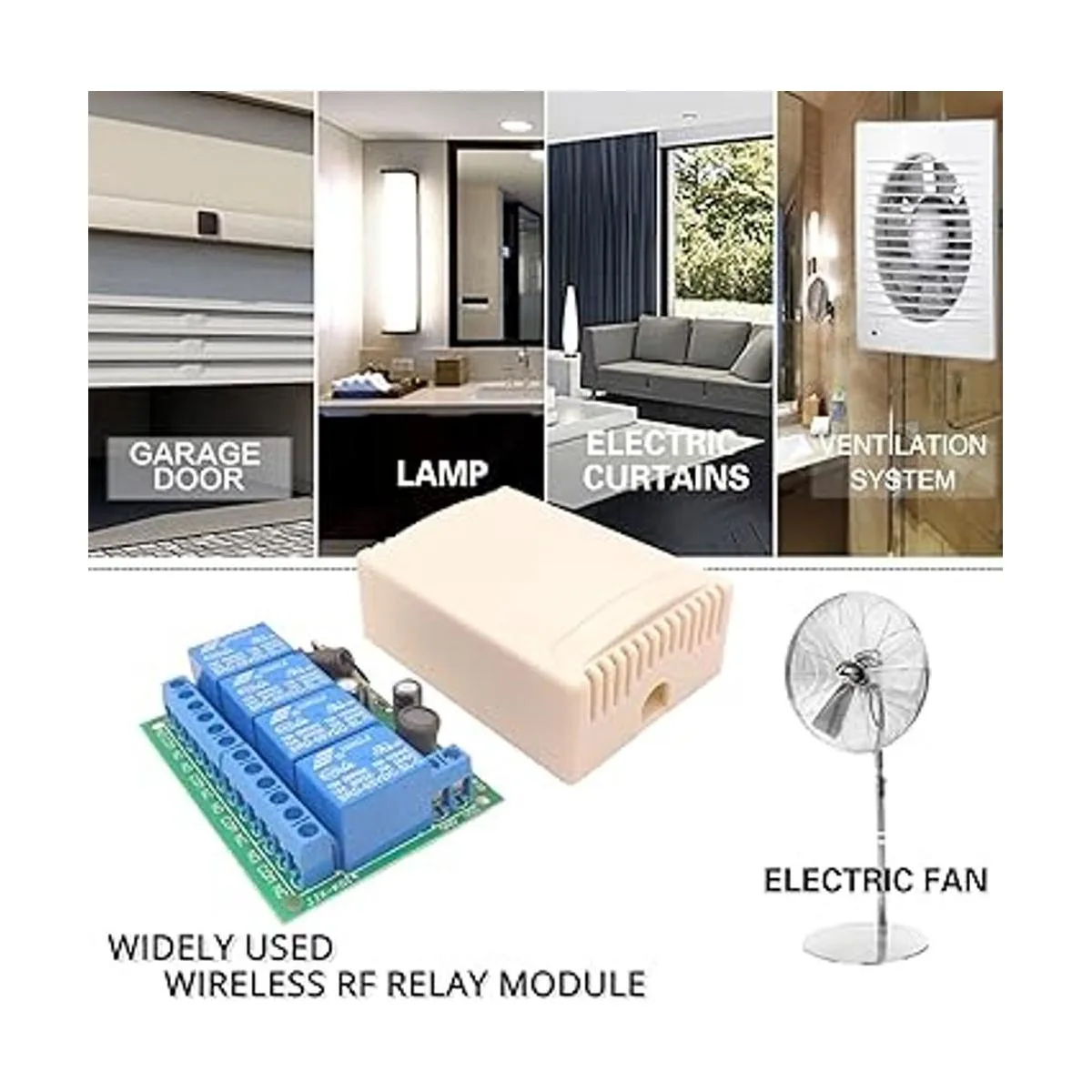 Amplia aplicación: los productos se pueden utilizar en hogares, granjas, fábricas, oficinas, laboratorios, supermercados, etc. Puedes operar de forma remota cada dispositivo conectado con el receptor de relé a través del control remoto. Como puerta de garaje, puerta eléctrica, puerta de obturación, puerta de expansión y cortina eléctrica, ventilador, lámpara, iluminación, dispositivo de ventilación, transmisión de señal, etc.