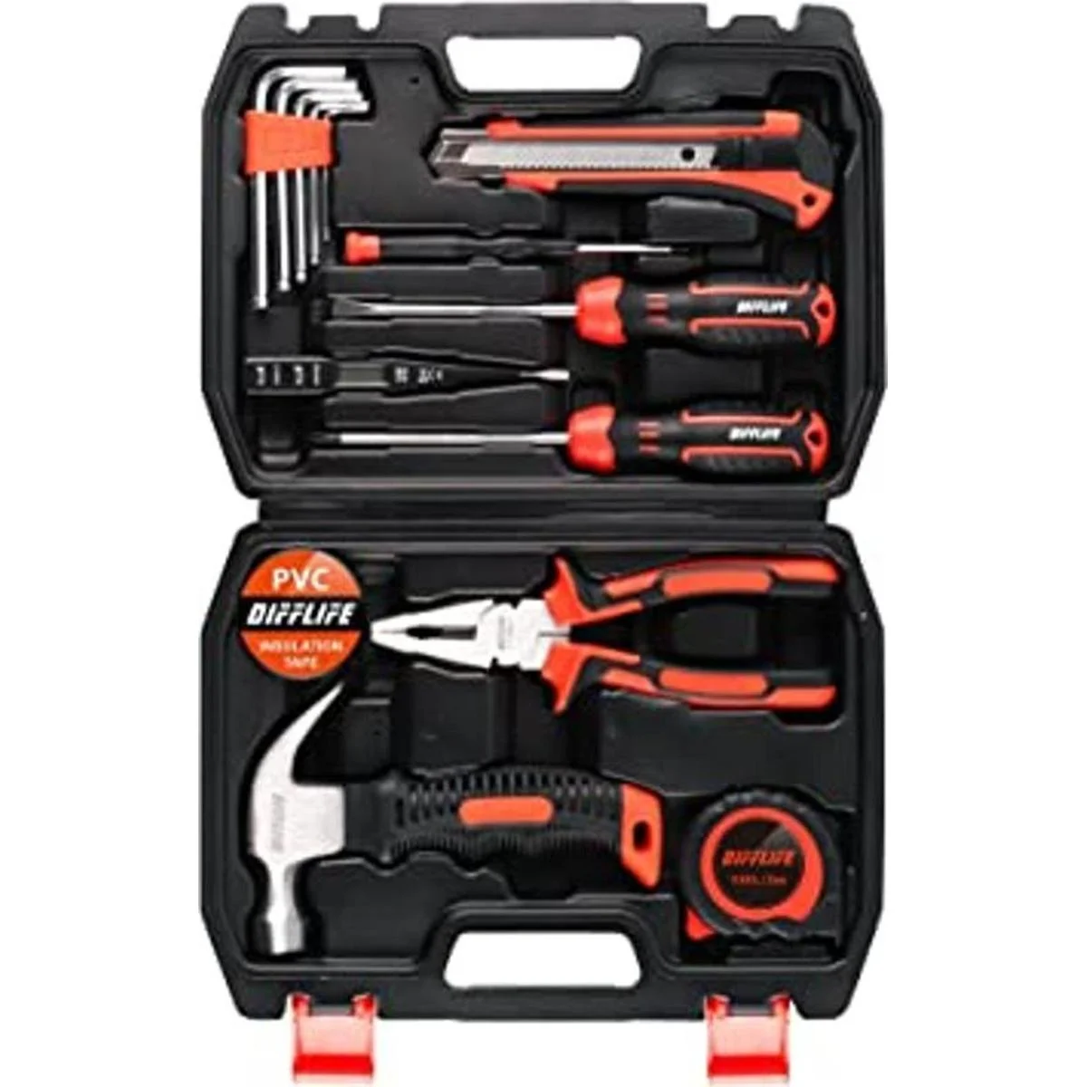 DIFFLIFE Juego de herramientas para el hogar, 15 piezas, juego de herramientas de reparación general para el hogarauto con martillo, alicates, juego de destornilladores y caja de almacenamiento de caja de herramientas, perfecto para propietarios, bricolaje, manitas 15 piezas
