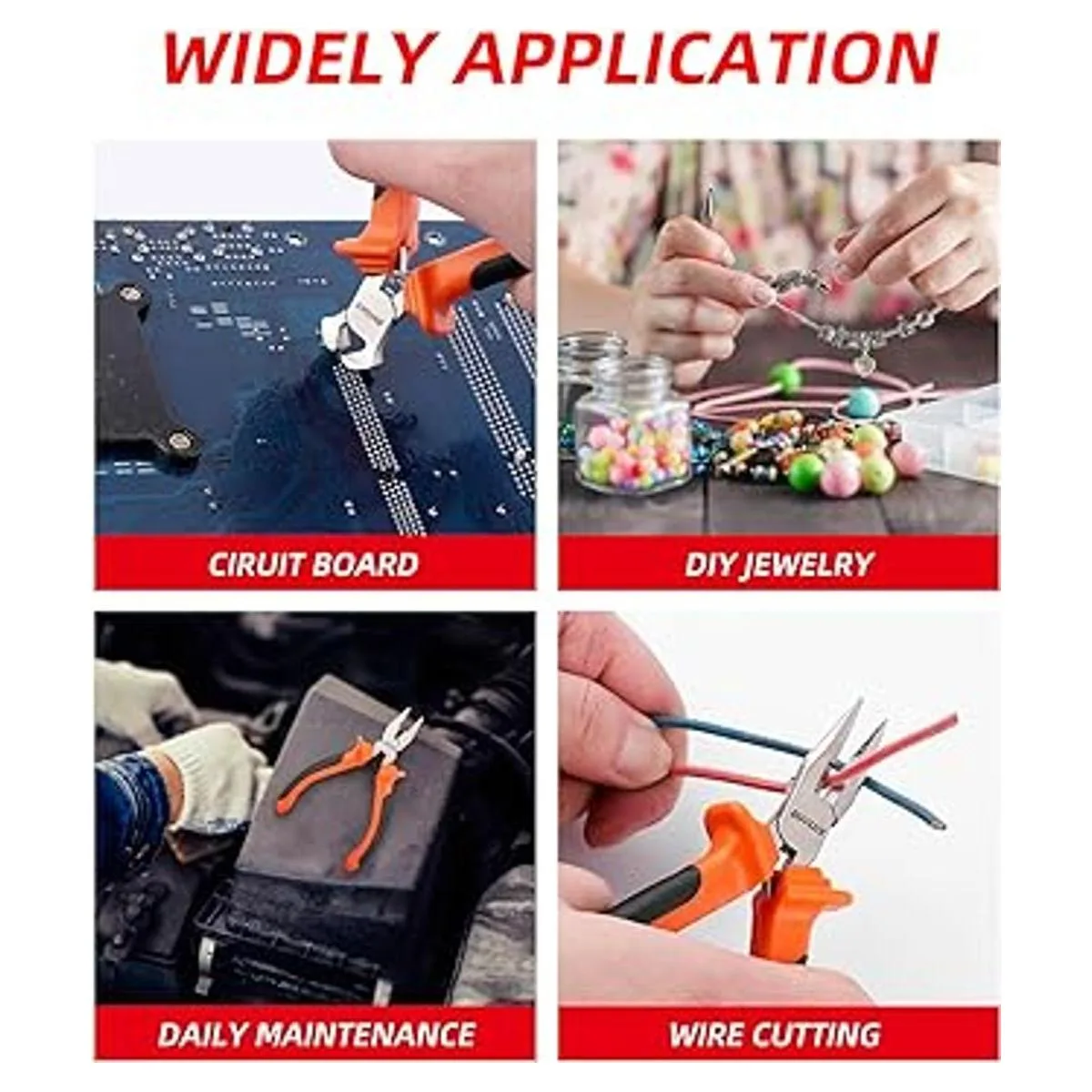 Amplias aplicaciones: este juego de alicates se puede utilizar para reparaciones de circuitos, manualidades, joyas de bricolaje y más, y también viene con una pequeña bolsa fácil de llevar.