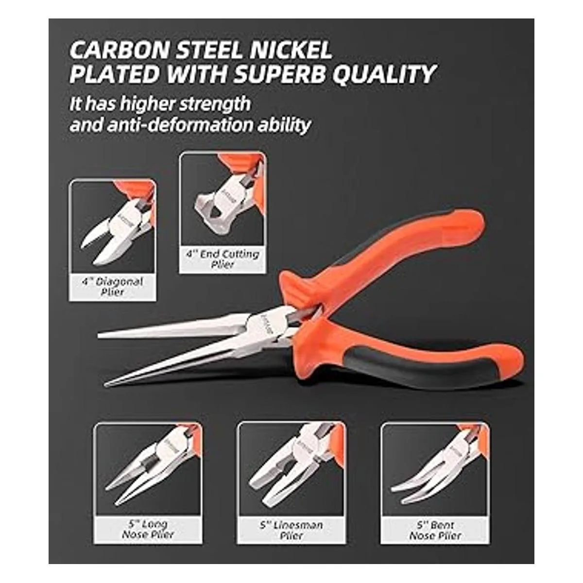 Material de alta calidad: hecho de acero al carbono forjado chapado en níquel, las ventajas de estos alicates son una mejor resistencia a la corrosión y mayor resistencia a la corrosión, el mecanizado de borde de corte de alta frecuencia hace que los alicates sean más afilados y duraderos.
