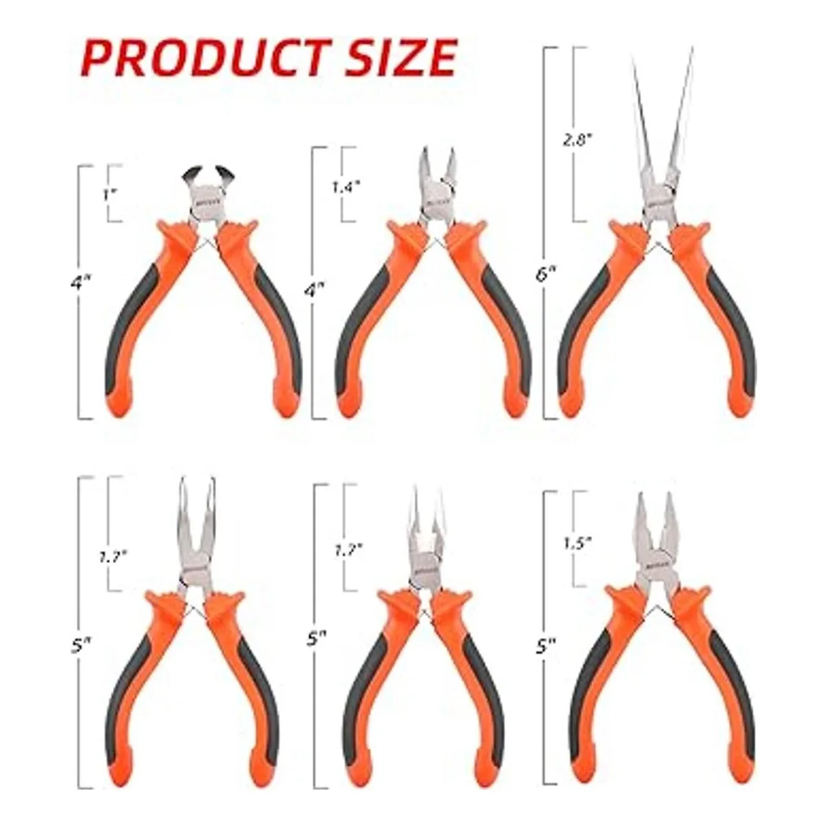 Configuración del kit: el kit incluye 6 mini alicates: alicates combinados de 4.5 pulgadas, alicates de corte diagonal, alicates de punta de aguja, alicates de punta larga, alicates de punta plana, alicates de corte final. Se puede utilizar para cortar, sujetar, doblar alambre