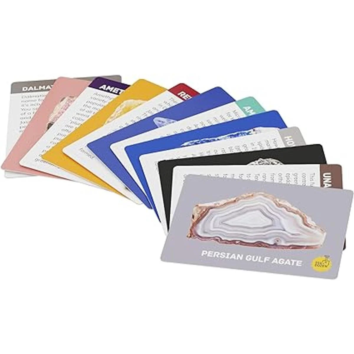 12 tarjetas de aprendizaje de gemas a todo color: Incluye 12 hermosas tarjetas, cada una describe las características de una gema diferente. Después de desenterrar una gema, intenta combinar la tarjeta apropiada con ella y aprende más al respecto