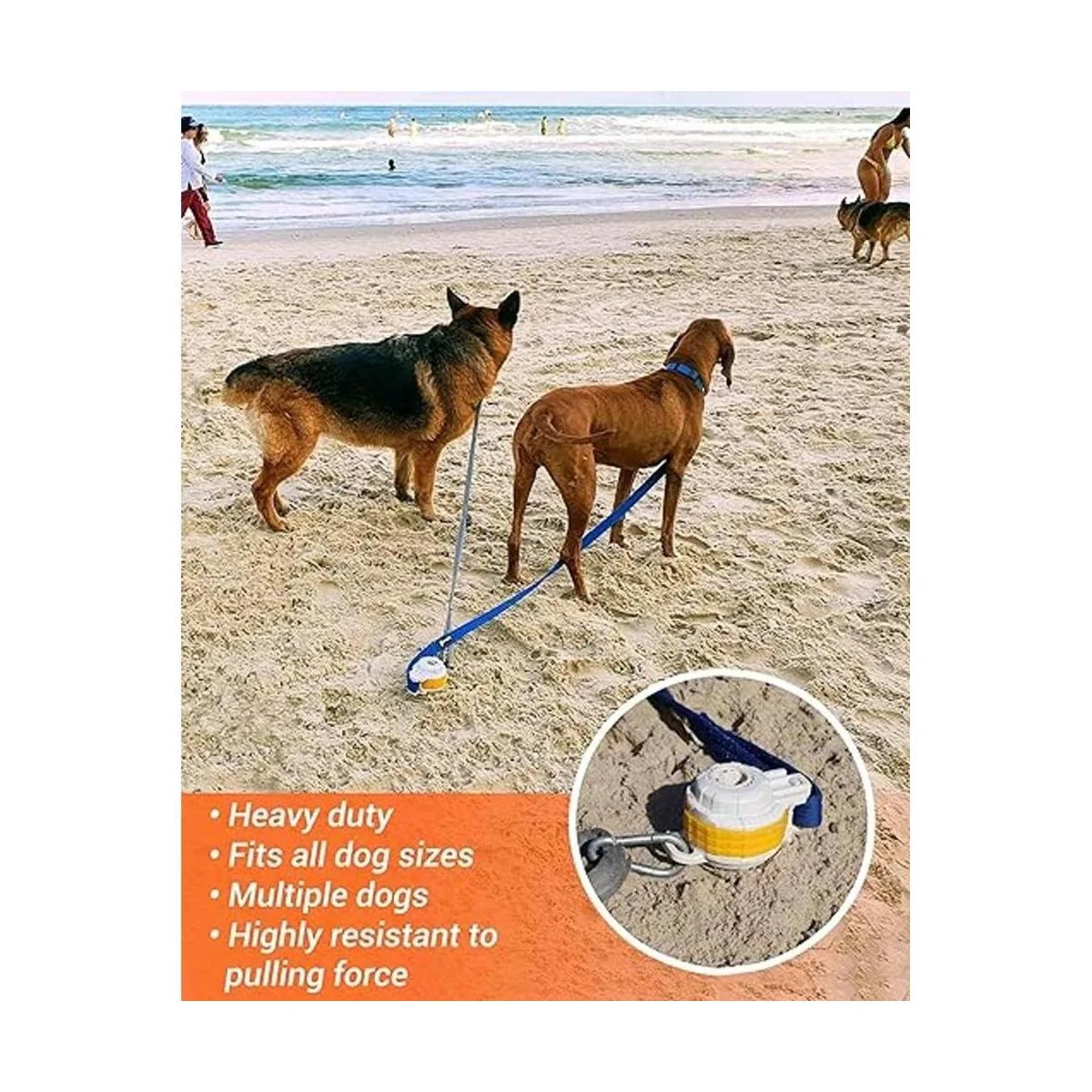 DIGGO Estaca para perros accesorio esencial de playa para todos los tamaños de perros, cabezal giratorio único de 360 con un sistema de bloqueo inteligente y un anclaje de arena para sombrilla, estaca de amarre resistente, diseñada para la playa