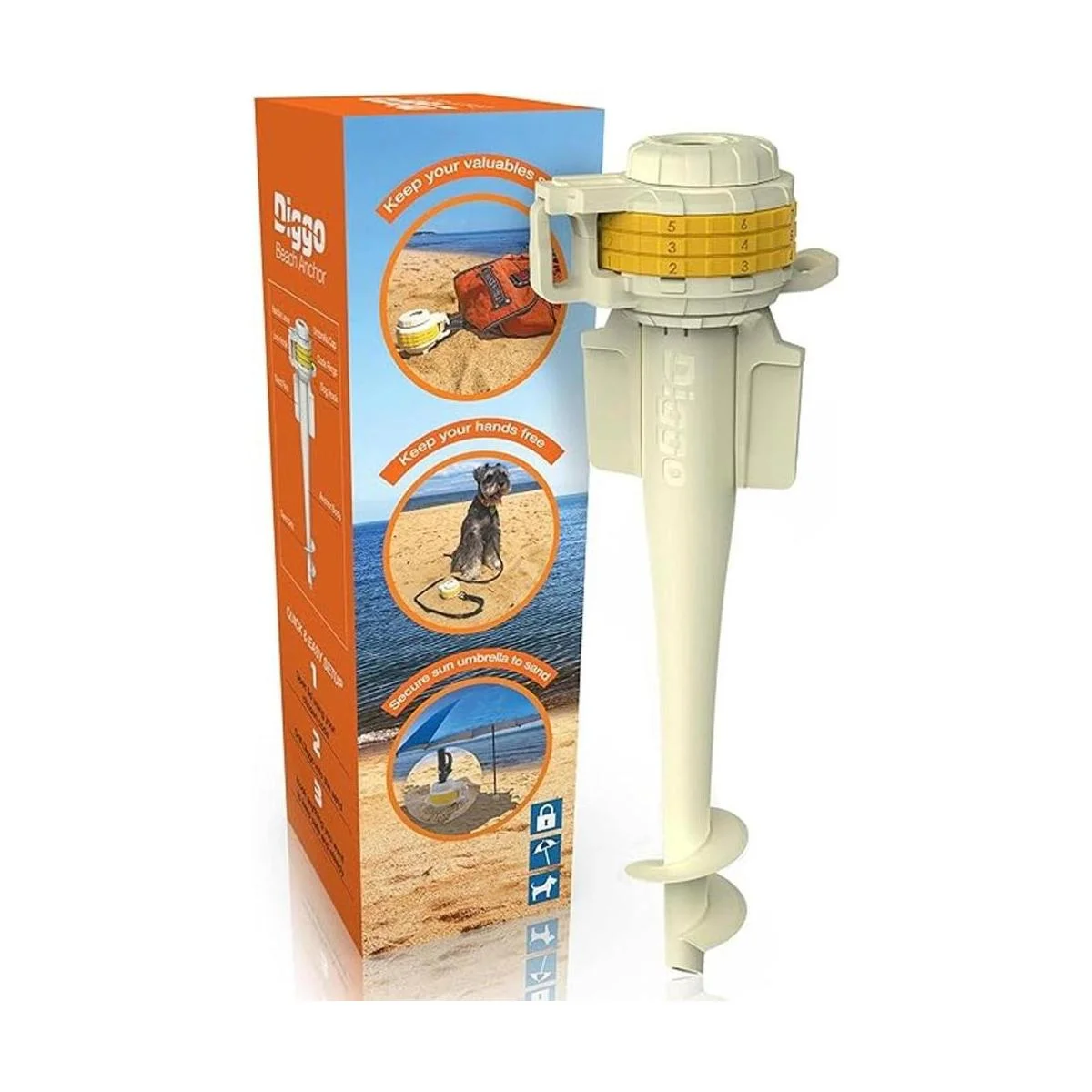 Haz que toda tu experiencia de playa sea deliciosa: a diferencia de otras estacas de playa, Diggo es una solución de playa completa, incluyendo un soporte para paraguas y un mecanismo de protección contra robo de bolsas para mantener a tu familia y bolsa seguros bajo el sol