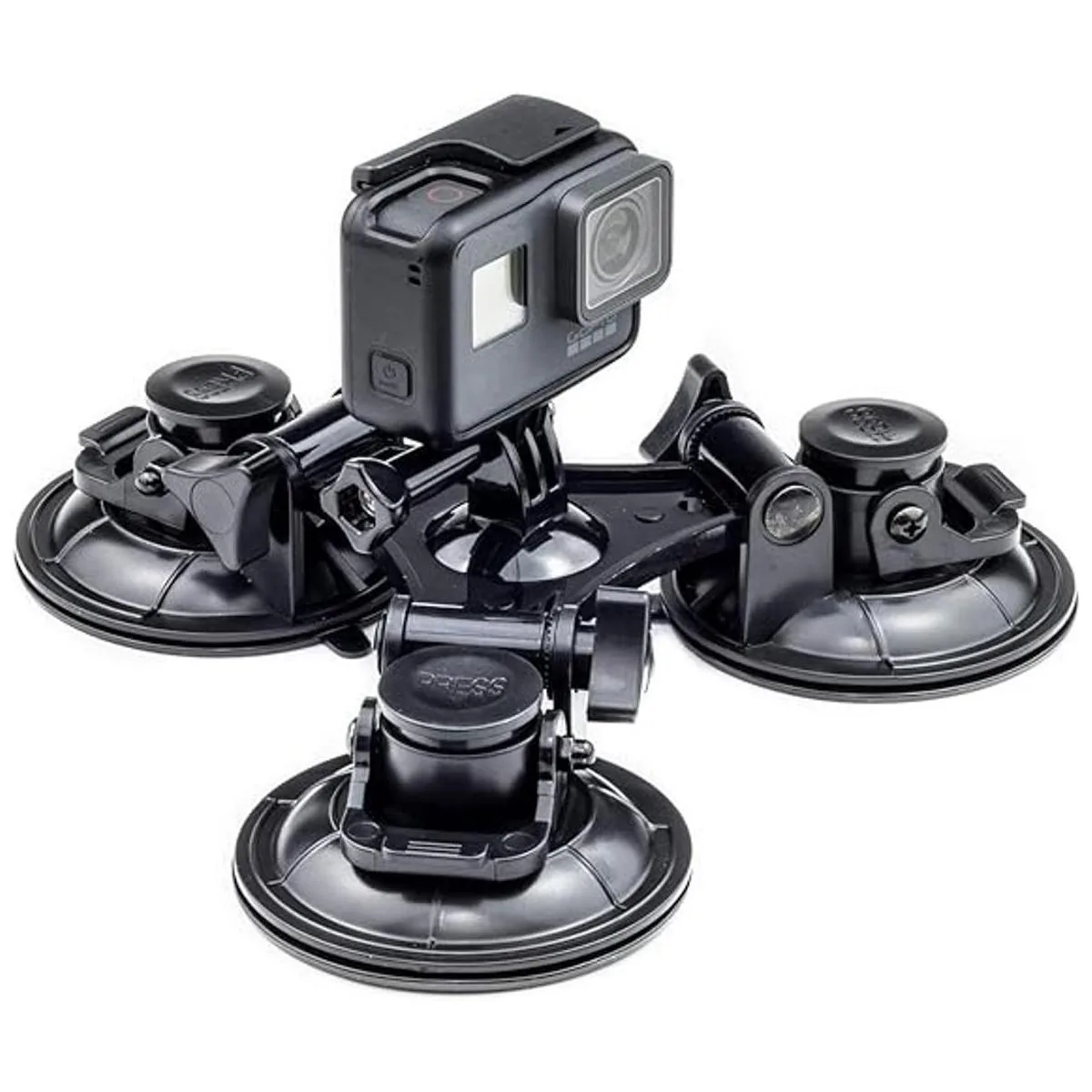 Auténtica fabricación Digicharge de alta calidad de plástico ABS duradero con tres ventosas para asegurar tu cámara deportiva a cualquier superficie lisa como la carrocería del coche o ventanas, etc.