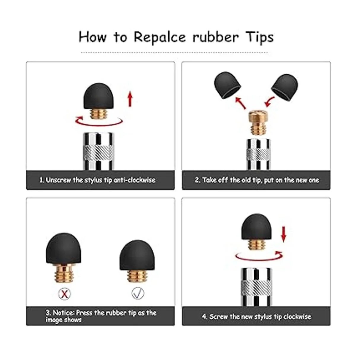 Paquete reemplazable y 4 en 1 Dos extremos de los lápices tienen puntas de goma reemplazables. Es fácil terminar el proceso de reemplazo sin necesidad de herramientas en cuestión de segundos. El paquete contiene 4 lápices capacitivos, 4 puntas de goma de repuesto de 0.20 pulgadas, 4 puntas de goma reemplazables de 0.27 pulgadas, prolonga eficazmente la vida útil del lápiz capacitivo. Para más consejos de repuesto, busca B0B87B8Y7T en .