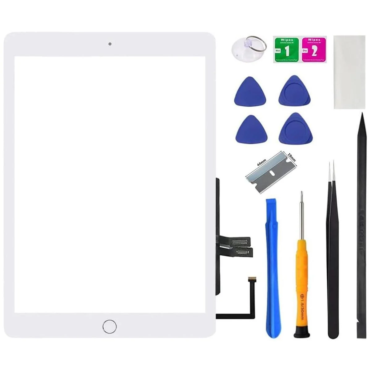 Digitalizador de pantalla táctil para iPad 6 de 6 generación, solo para iPad 2018 A1893 A1954 Reemplazo de montaje de vidrio con botón de inicio sin Touch ID, kit de herramientas de reparación blanco