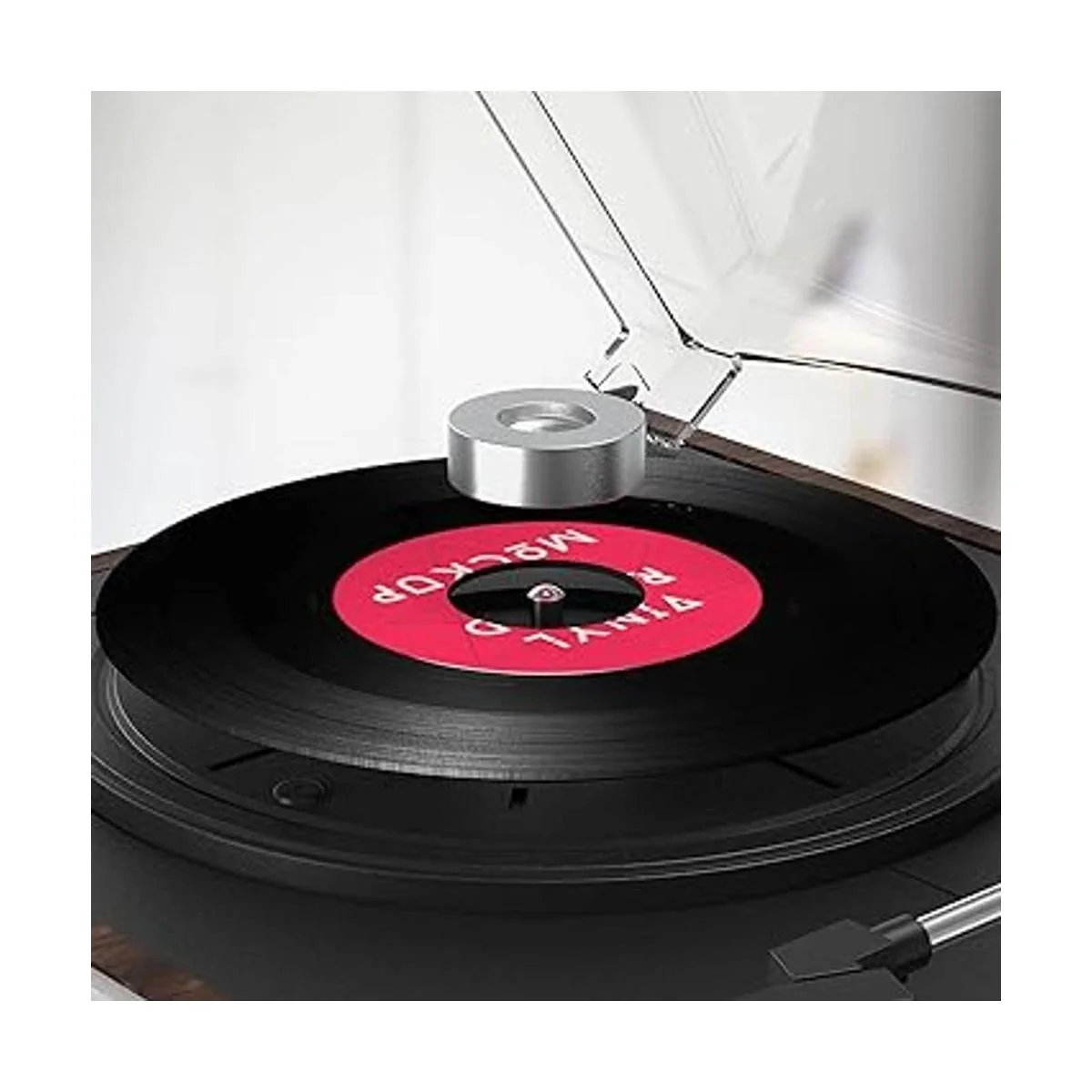 Material duradero: adaptador de grabación de 45 rpm fabricado con aluminio de alta calidad, aumentando el contacto entre el disco y el plato y mejora la calidad del sonido mientras reduce la resonancia y la vibración.