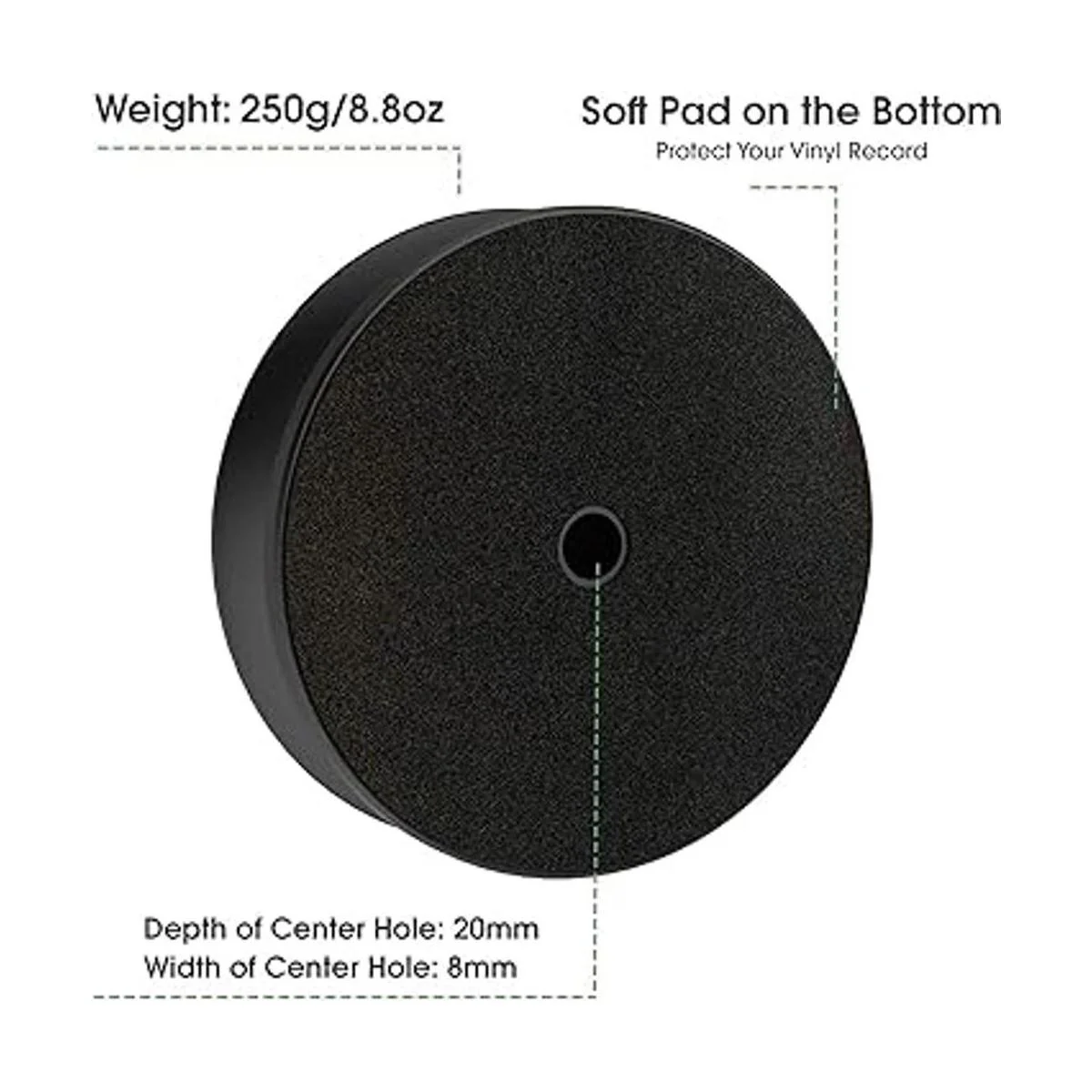 Protege el disco giratorio de vinilo: para eliminar la vibración, estabilizar la velocidad de rotación y mantener el nivel horizontal de la placa giratoria LP. Mantiene la etiqueta de registro segura y la distribución del peso está bien centrada.