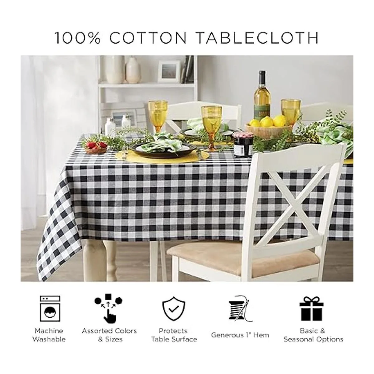 Mantel para 6 a 8 personas: 100 algodón con dobladillo de 1 pulgada, consulta la tabla de tallas del mantel en las imágenes para decidir el tamaño necesario