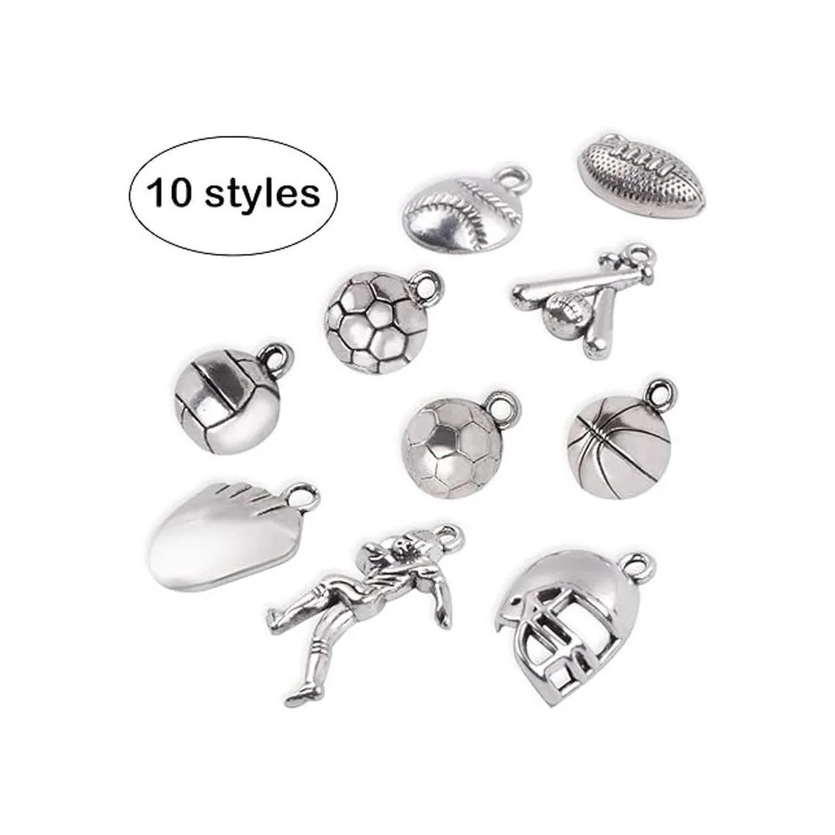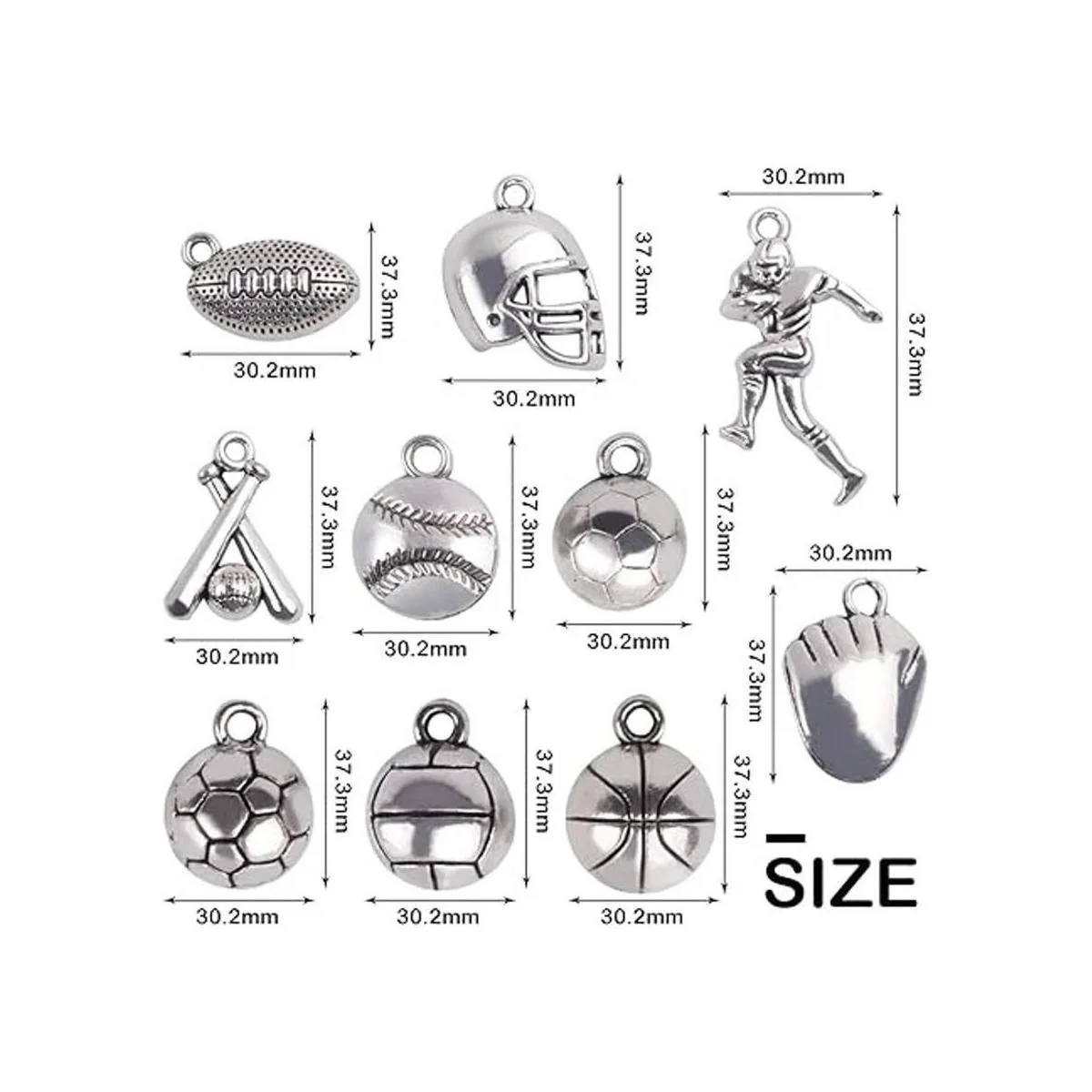 El paquete incluye: viene con 30 dijes temáticos de pelota deportiva en 10 estilos diferentes, 3 piezas de cada estilo.