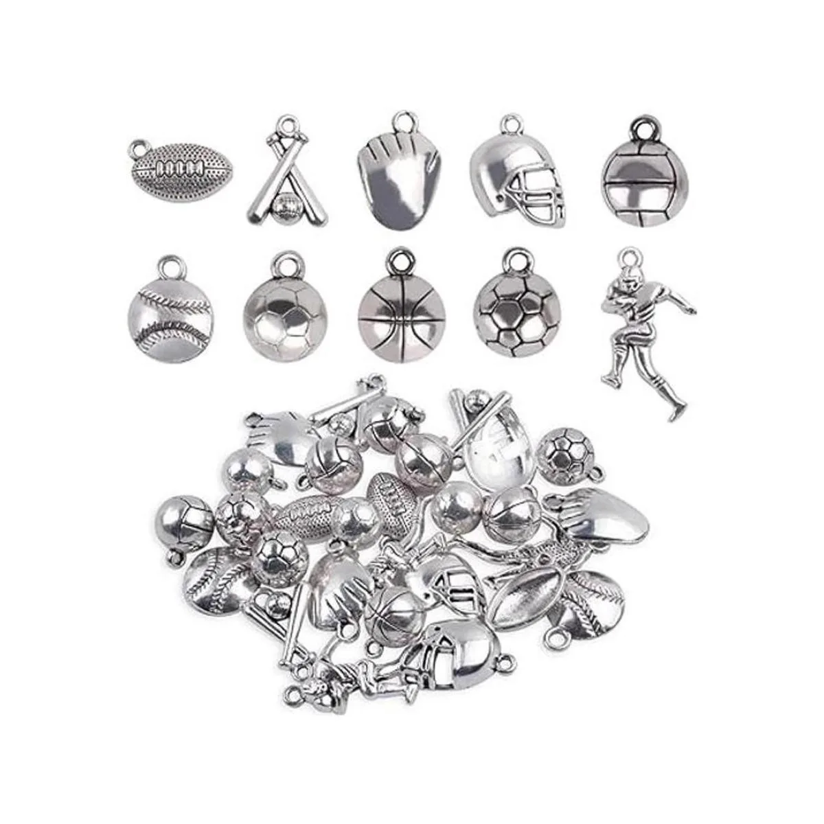 Dijes deportivos de juegos de pelota, 30 piezas de aleación mixta, temática deportiva, béisbol, fútbol, baloncesto, manualidades, colgantes, hallazgos, accesorios para hacer manualidades, collares, pulseras, aretes, 10 estilos