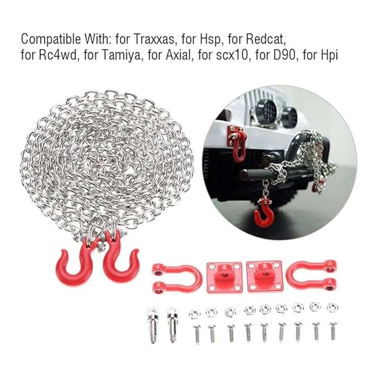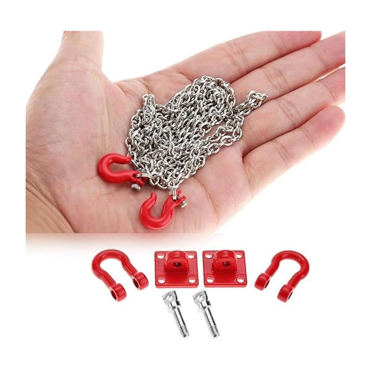 Dilwe RC Juego de cadena de remolque de remolque con gancho de remolque en forma de U para coche, pieza de remolque de remolque para RC, escalada y garrafa