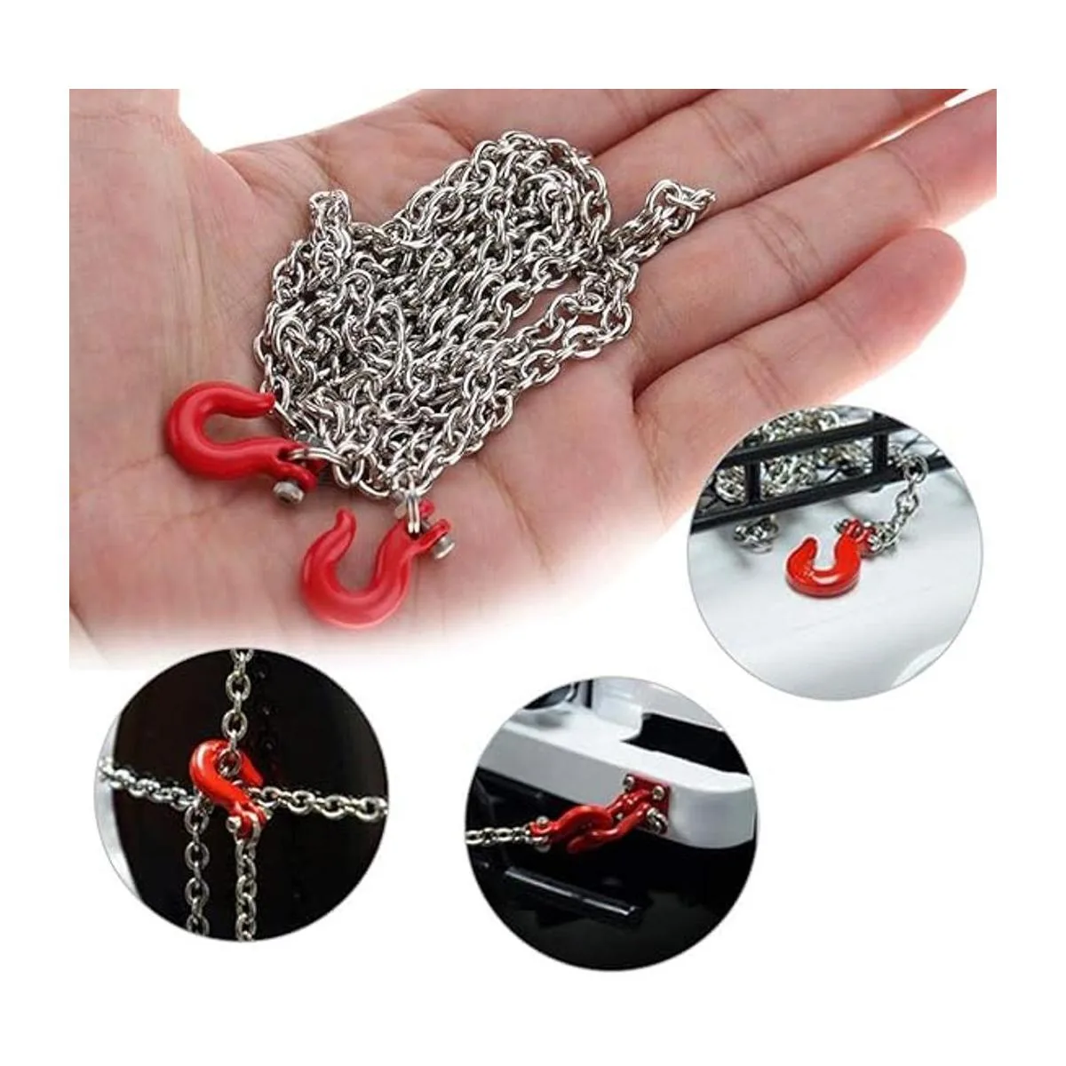 Material premium: el juego de cadena de seguridad para remolque de coche RC está hecho de metal de alta calidad, que es sólido y duradero.